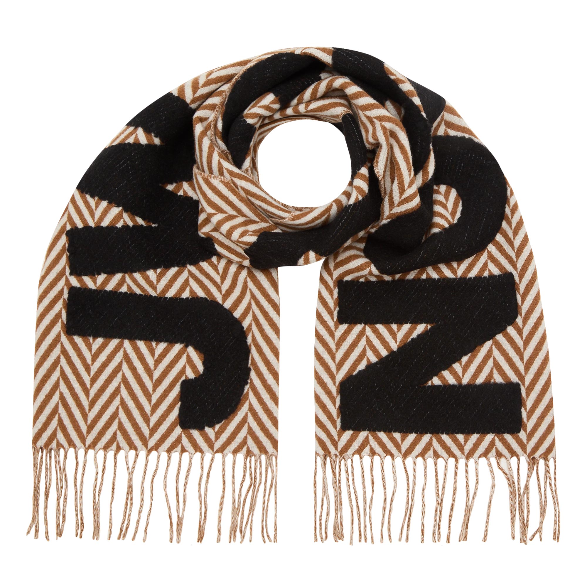 • Wrap design, fringed tassels, big logo lettering, chevron pattern, smooth fabric