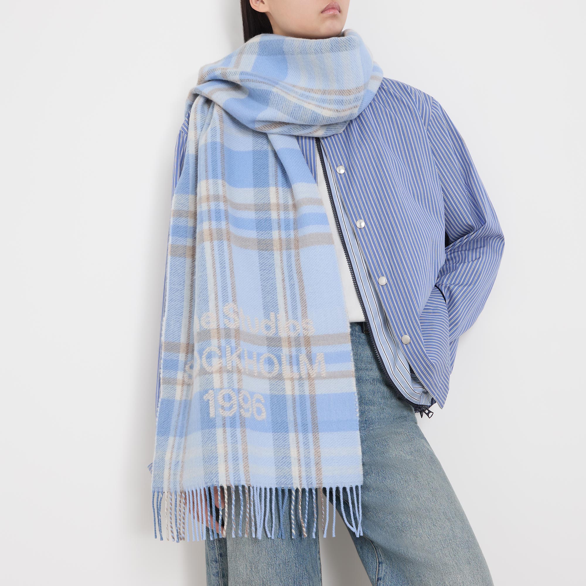 - Wrap-around design, fringed edges, check print, jacquard logo design, soft finish