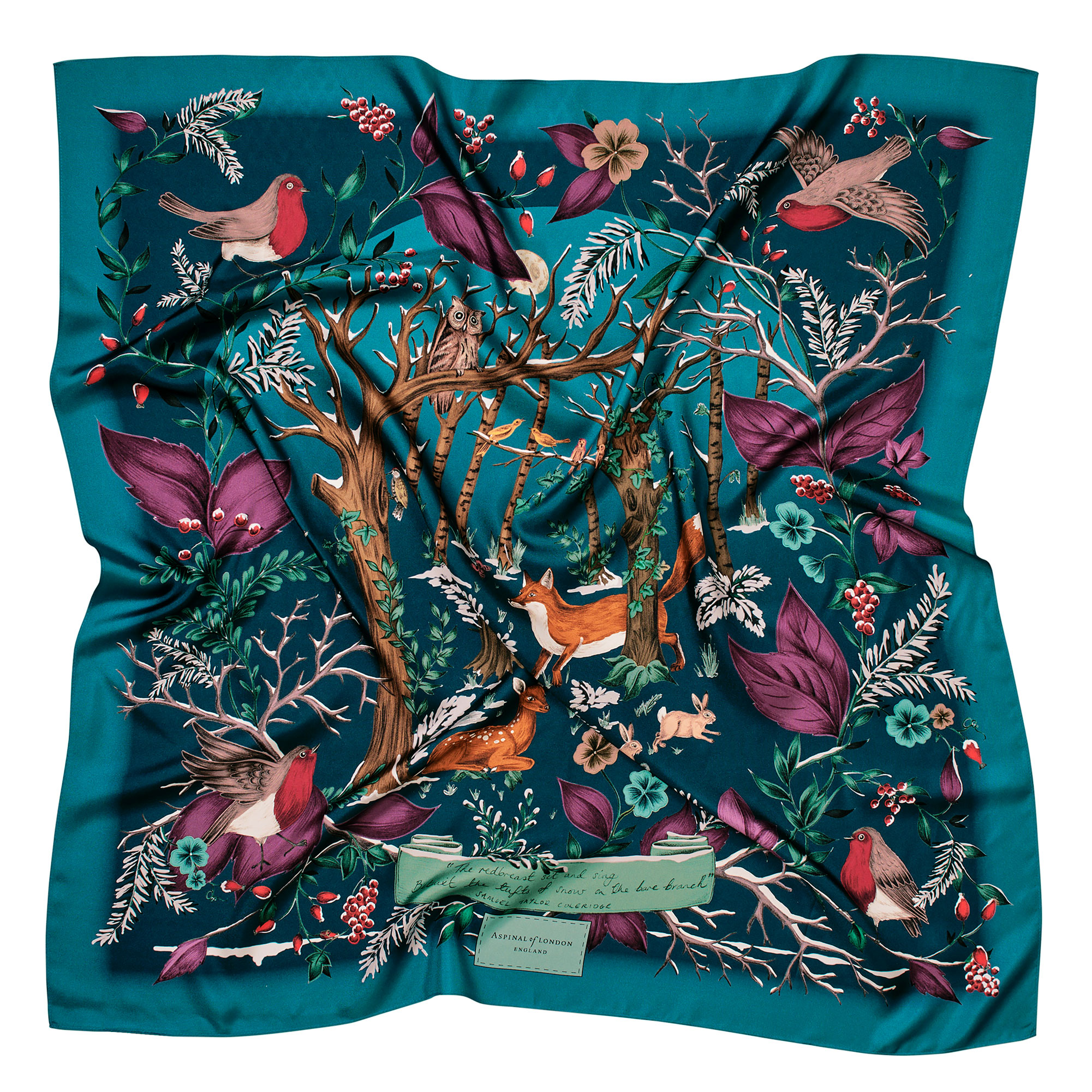 ASPINAL OF LONDON Woodland Logo Silk Scarf