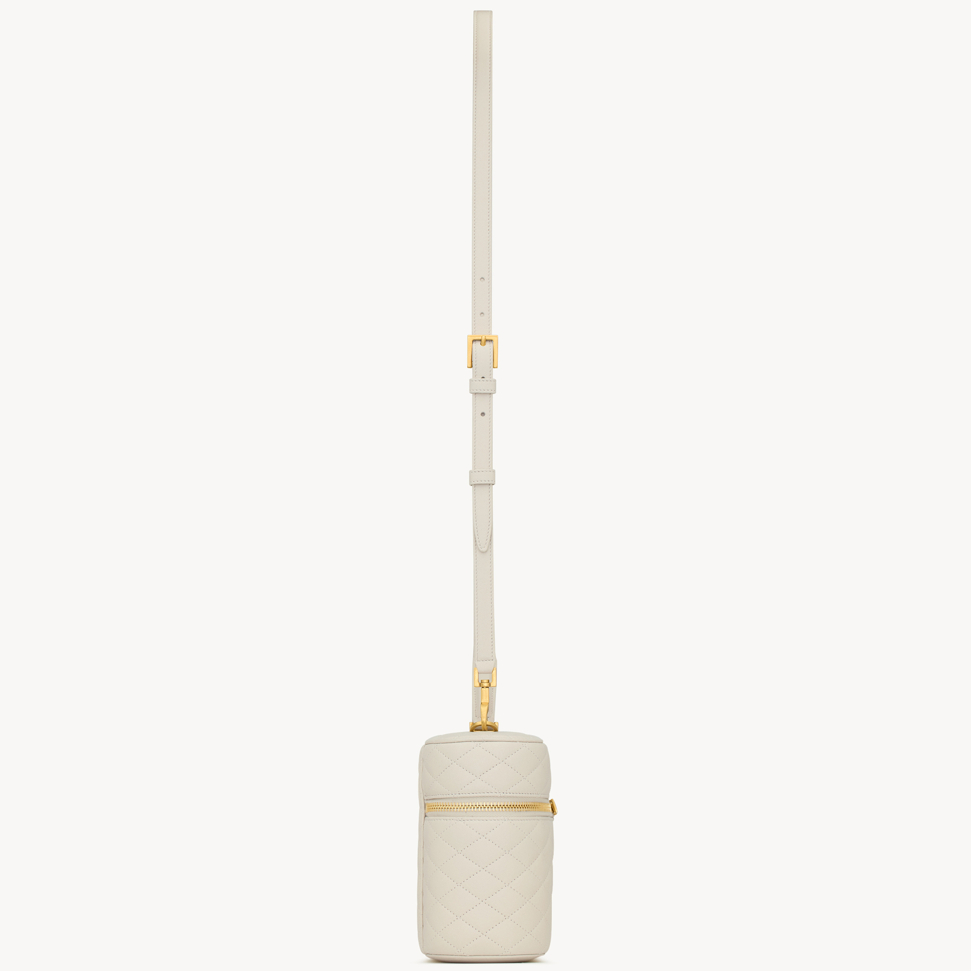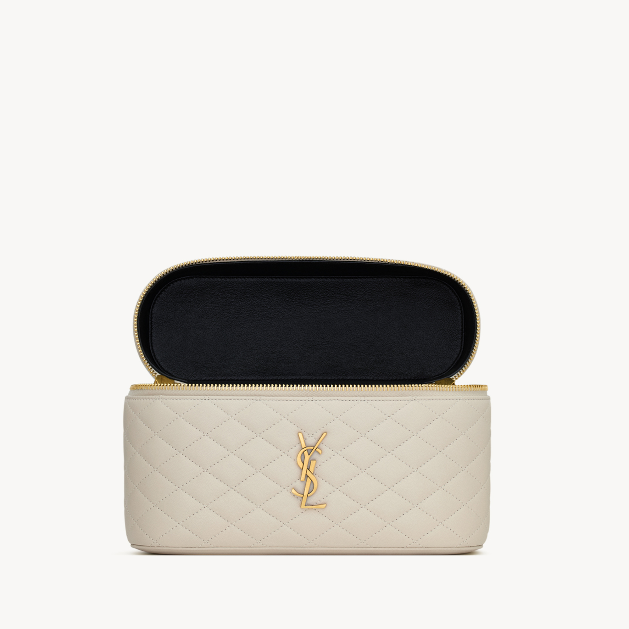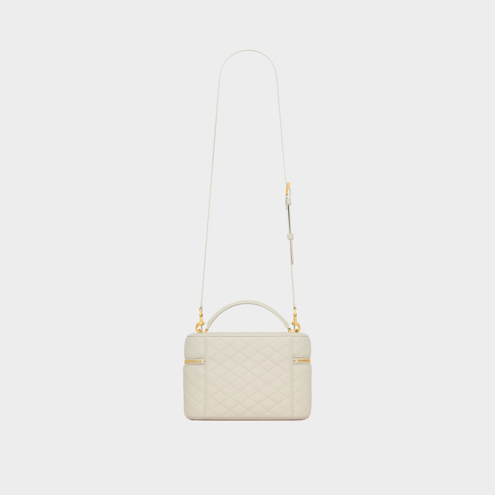 • Large size, vanity style, Cassandre logo, diamond-quilted topstitching, zip fastening, bronze-tone hardware, top handle, adjustable and detachable strap for multiple carry options, one card slot on interior