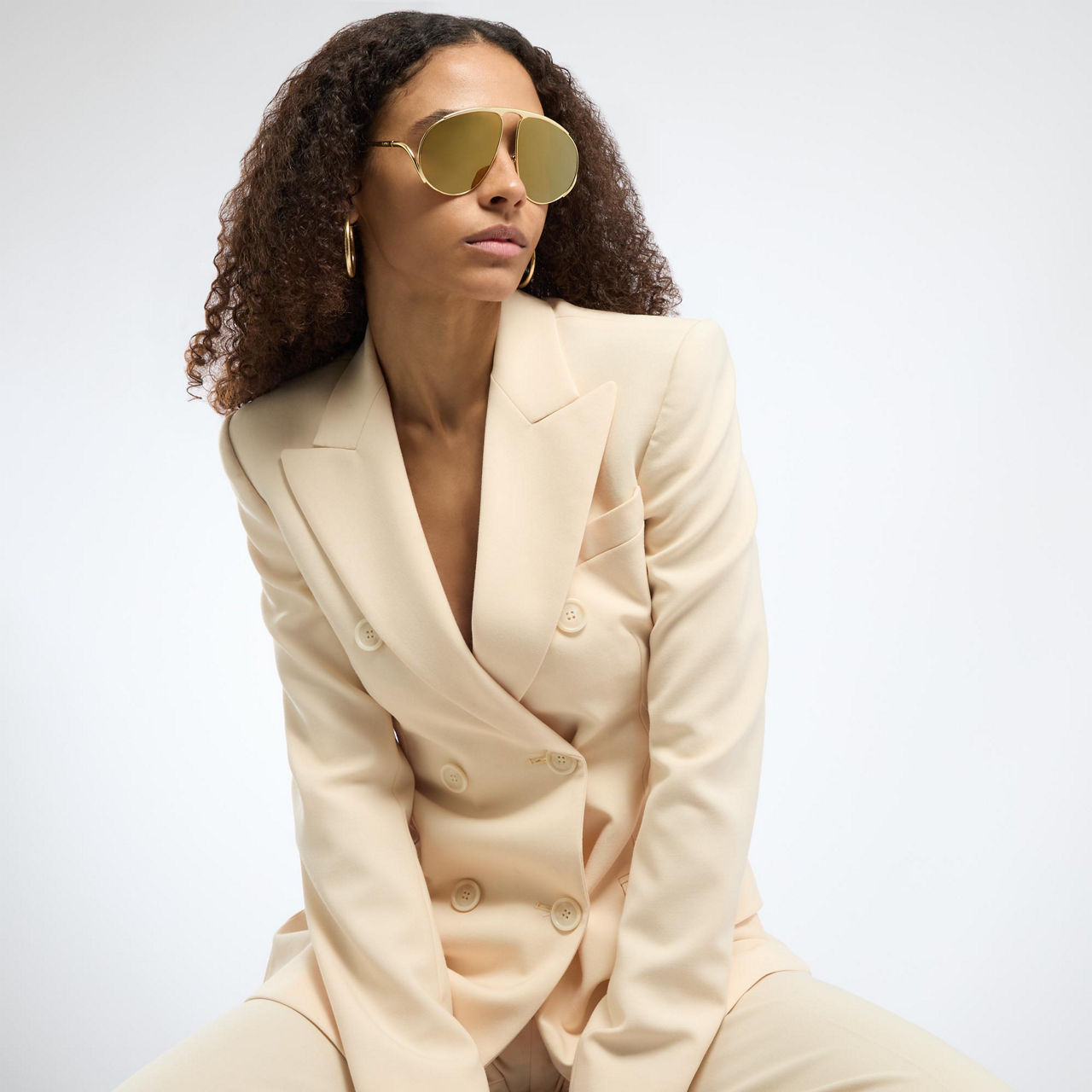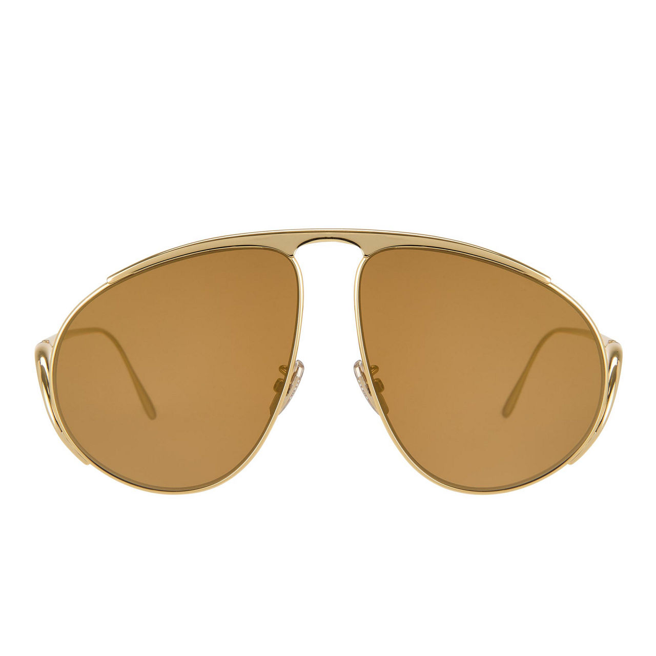 - Aviator frame, metal design, tinted lenses, sculpted arms, curved tips, embossed logo, UV-protective lenses