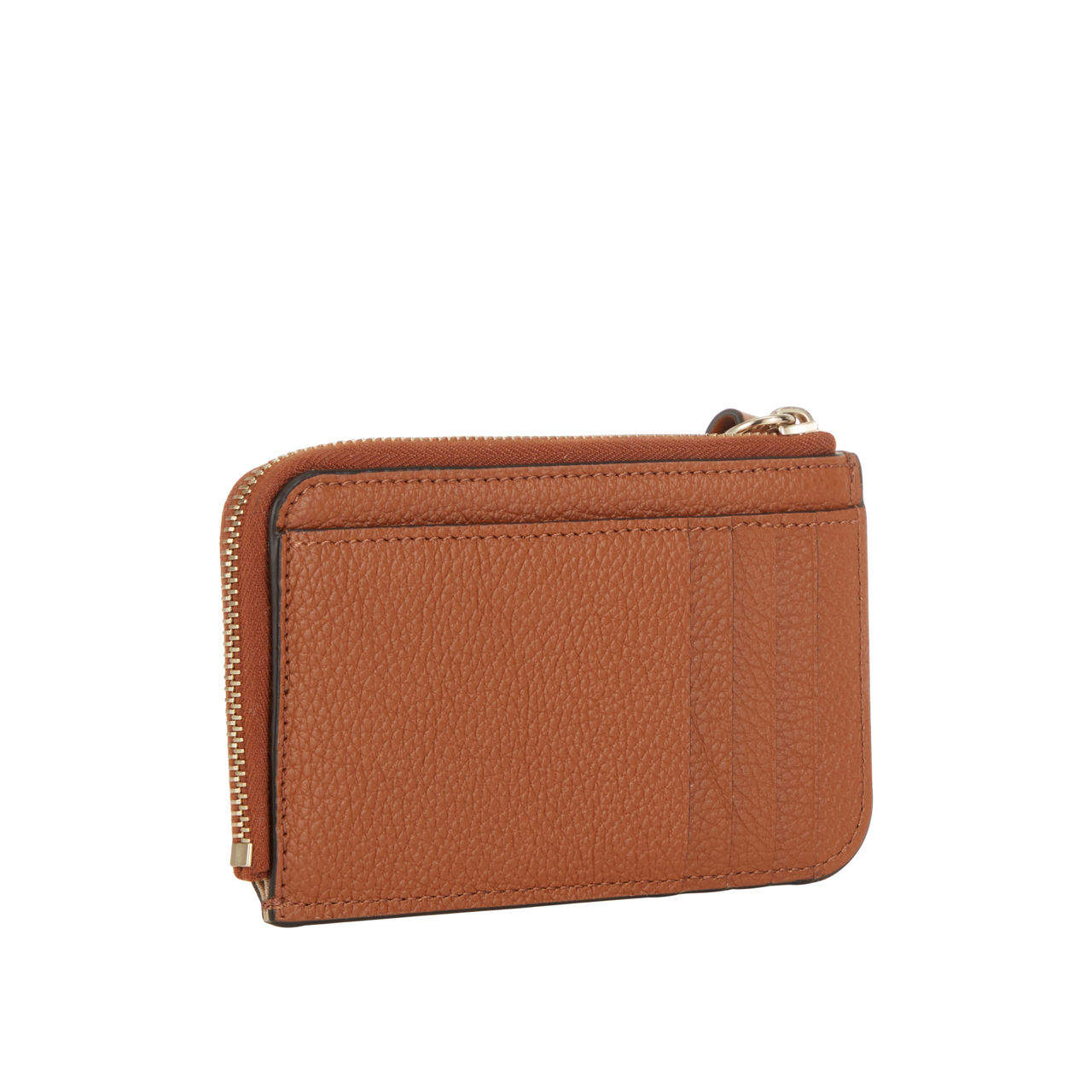 • Top zip-fastening pocket, back slip pocket, four card slots, logo branding, gold-tone hardware, tonal stitching, hanging logo plate and alphabet charm, grained leather finish