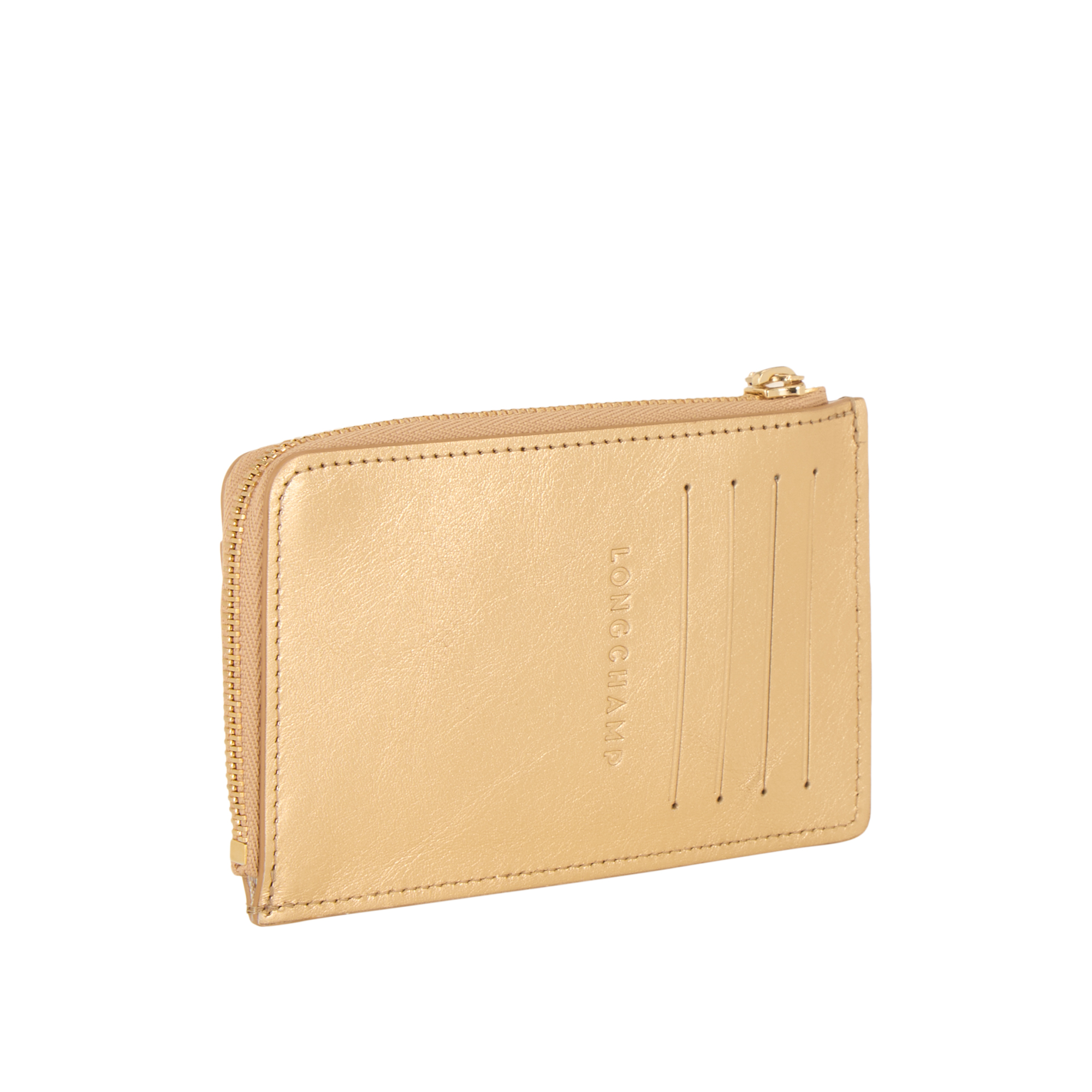 - Zipped middle pocket, gold-tone hardware, metallic finish, tonal stitching, logo details, multiple card slots, notes compartment