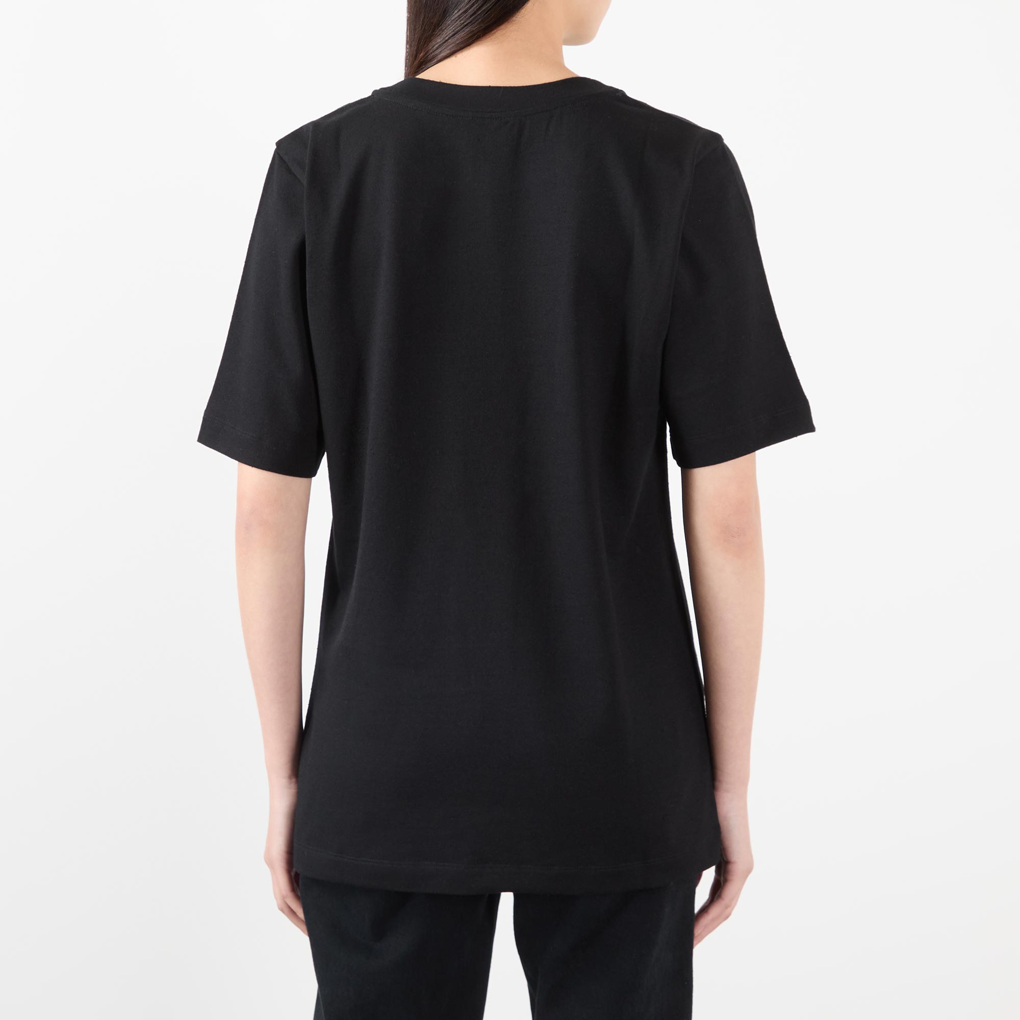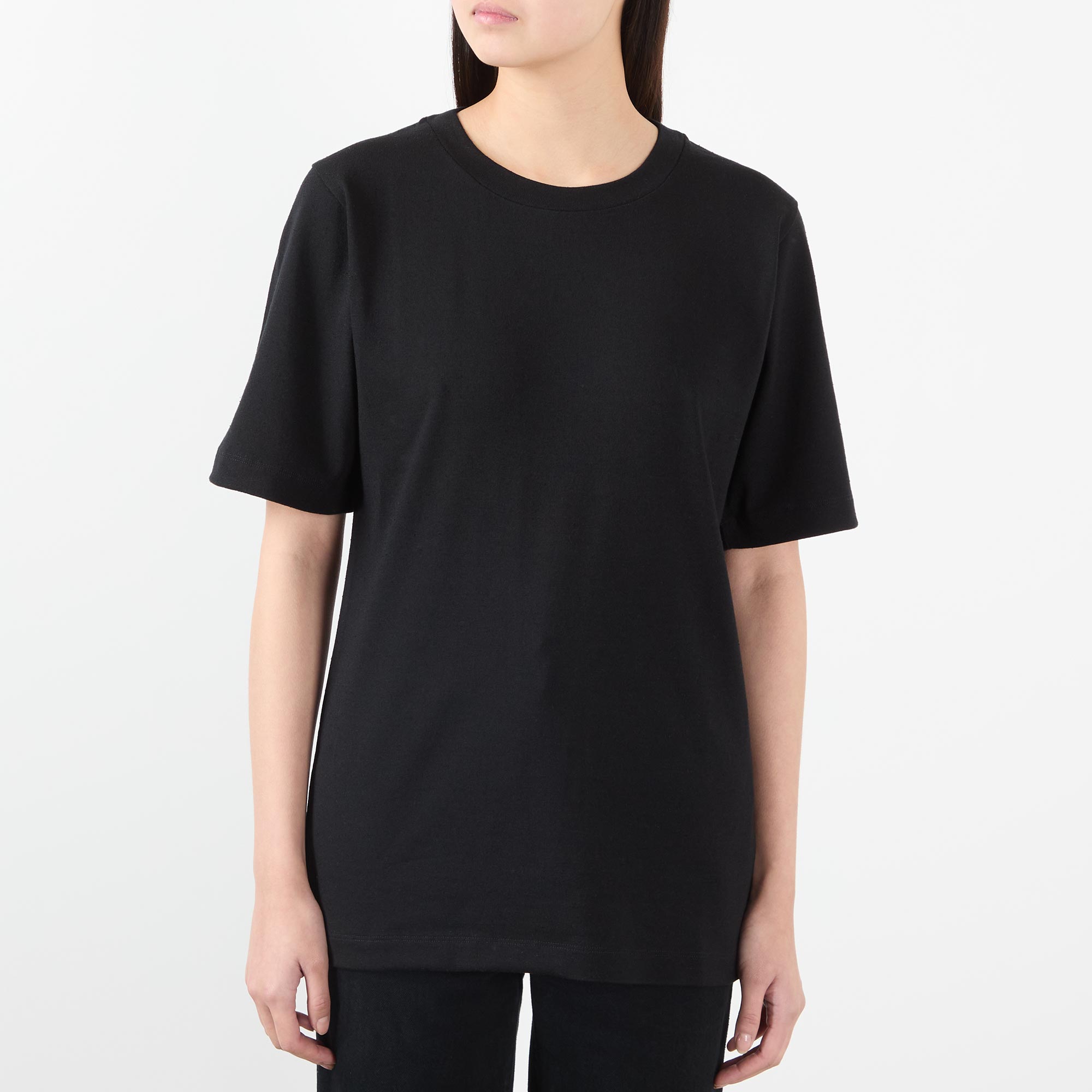 • Scooped round neckline, short sleeves, straight hemline, dropped shoulders, silk-jersey fabric