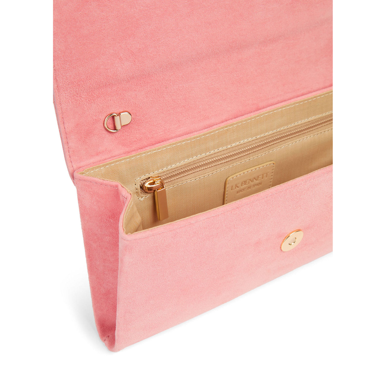 Simple in colour but bold on texture, LK Bennett's suede clutch is the effortless way to elevate your evening look. Brought out by subtle embroidery at the top flap, its classic envelope design clasps over a metal pressed stud for stylish safekeeping. It features an attachable gold-toned strap for an easy crossbody upgrade.