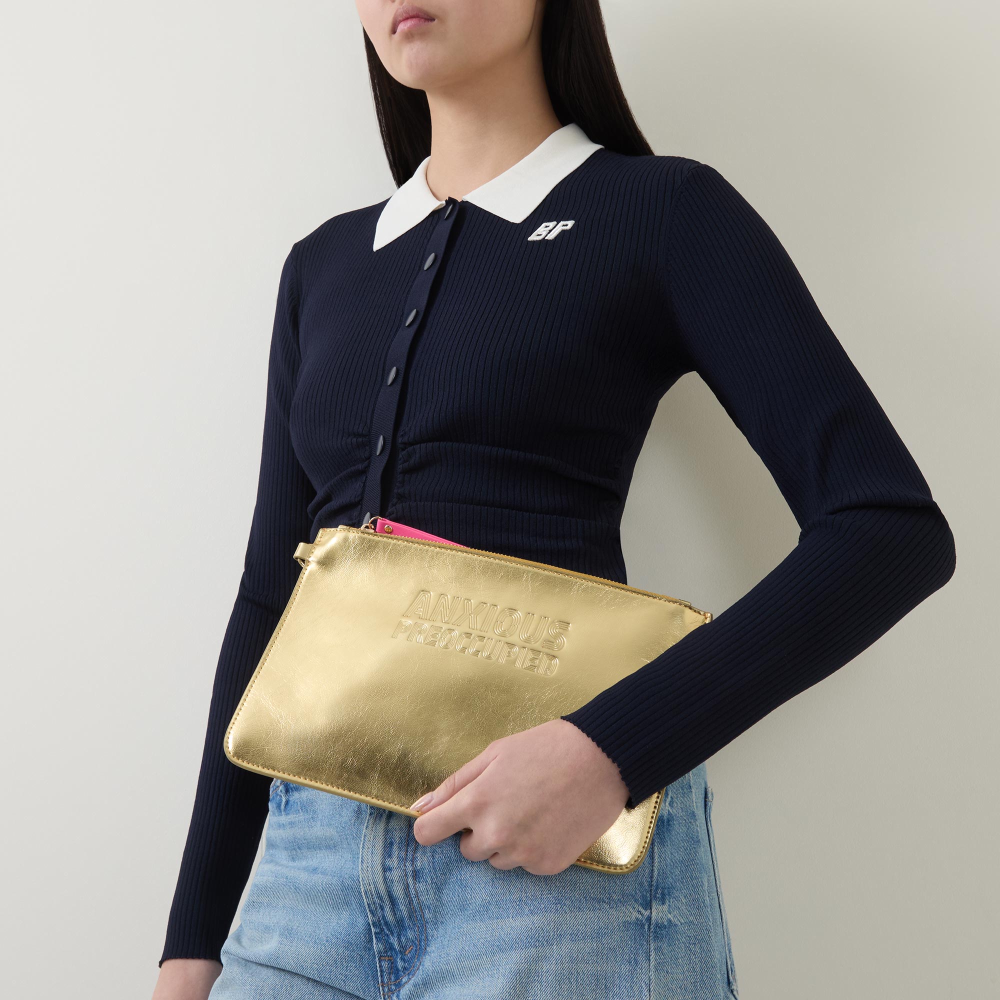 Luxury accessory brand, Anxious Preoccupied, was born out of co-founder Joanne McNally's self-declared attachment style. Established in 2023, the brand has quickly gained recognition for its humour and statement-making bags in signature metallics, often accompanied by complementary clutches and thoughtful design details.