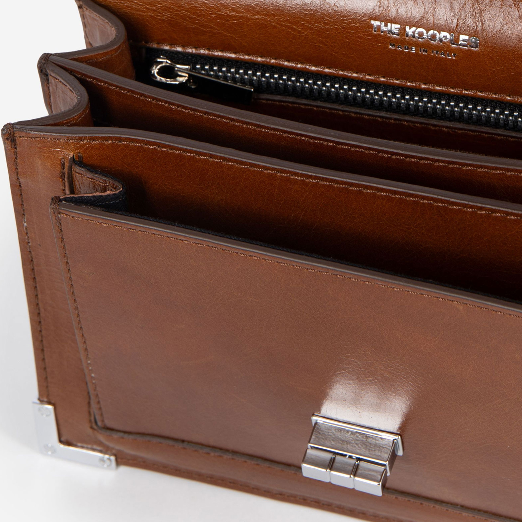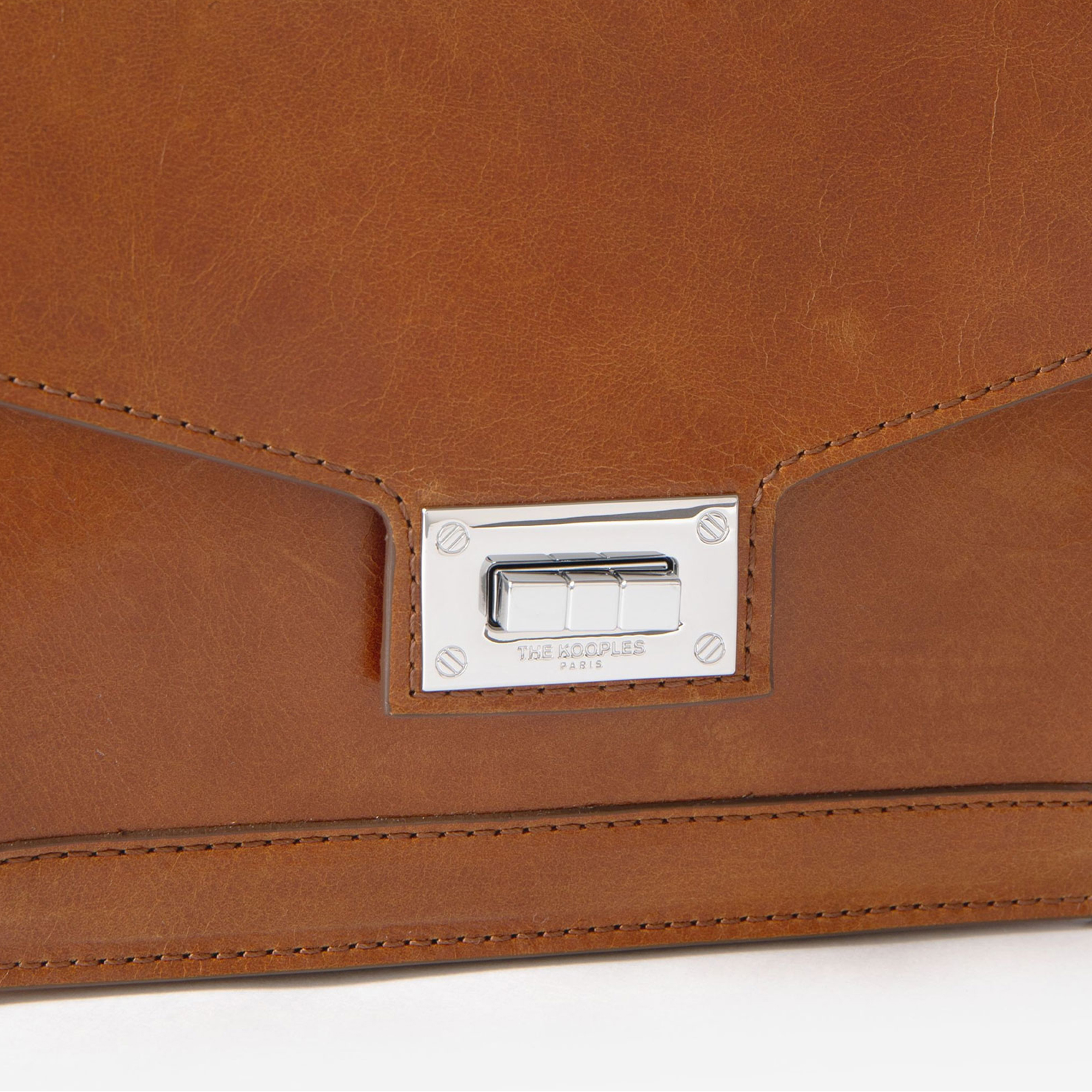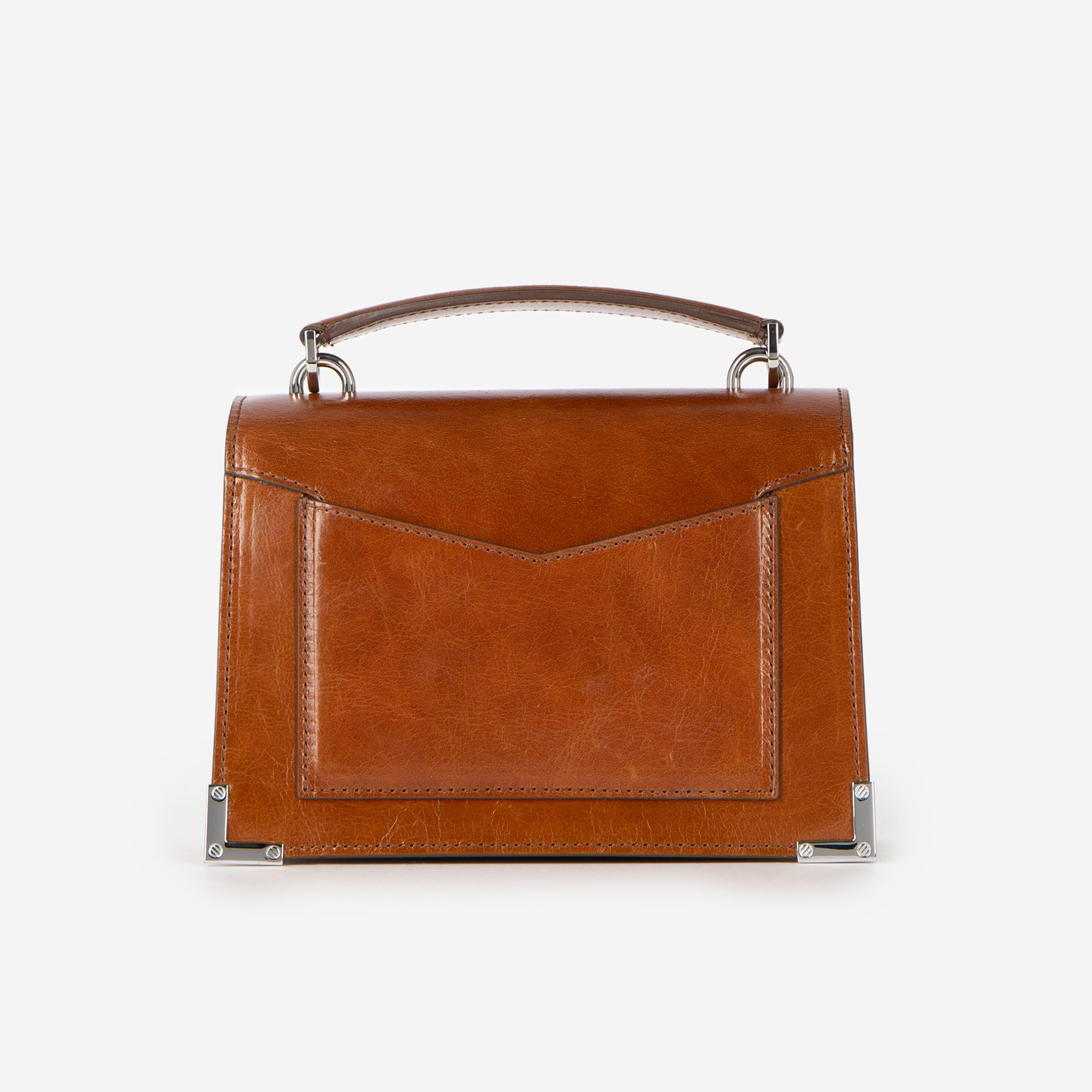 - Top handle, removable leather shoulder strap, Emily signature clasp fastening, silver-tone hardware, exterior back patch pocket, cracked leather finish