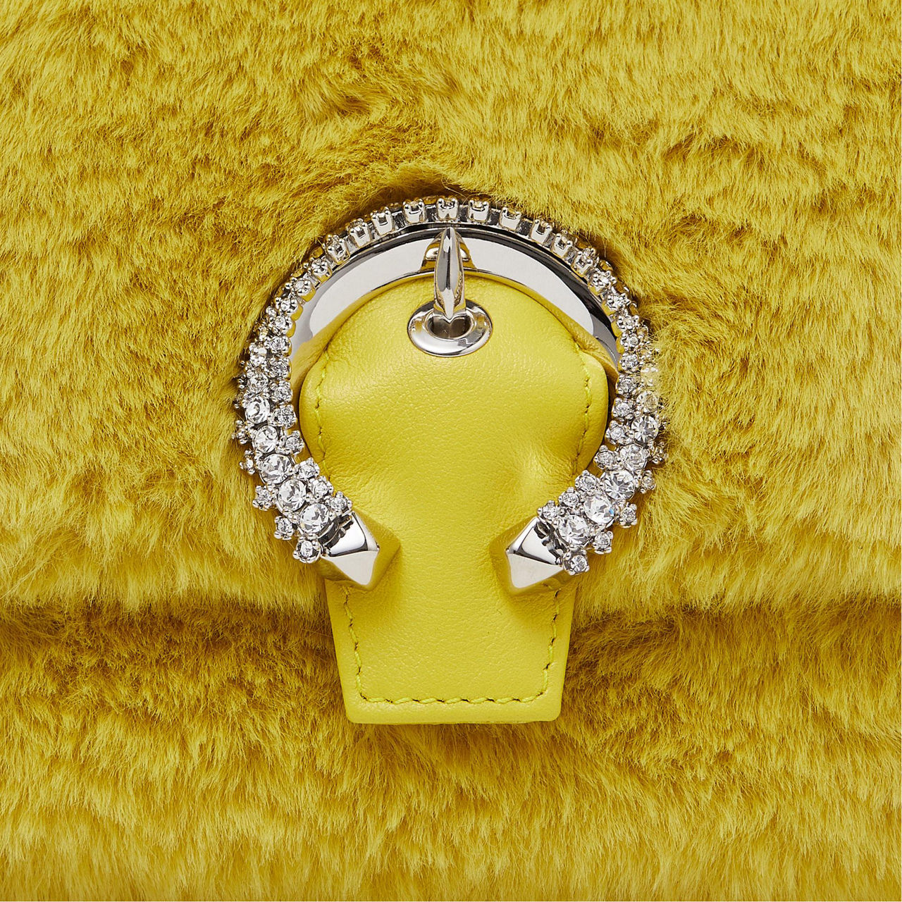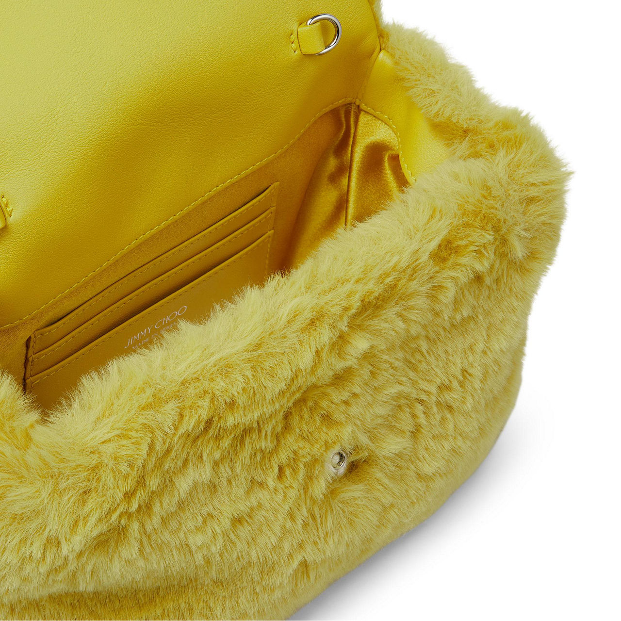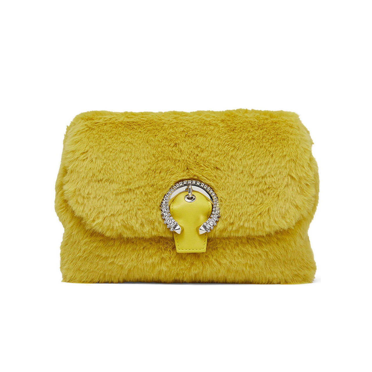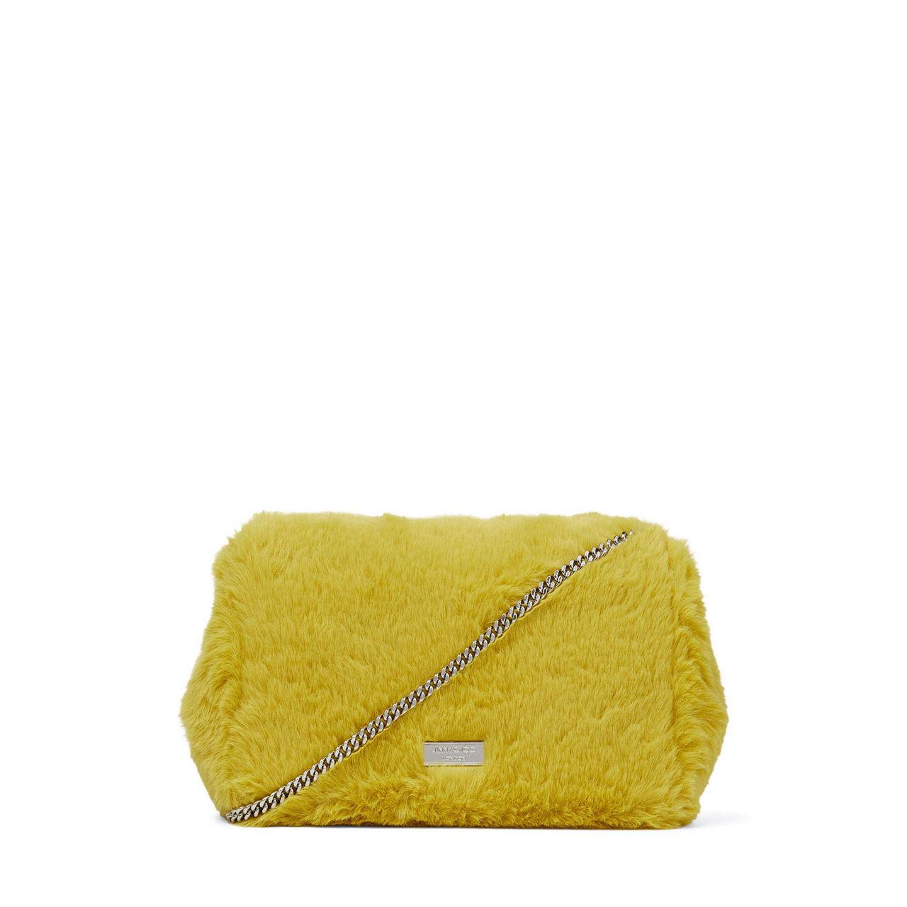 Jimmy Choo's much loved Madeline bag has been given a cosy update this season with a playful plush finish. Featuring the crystal embellished buckle and a detachable chain shoulder strap, the Madeline is a wise choice for making a statement this party season.