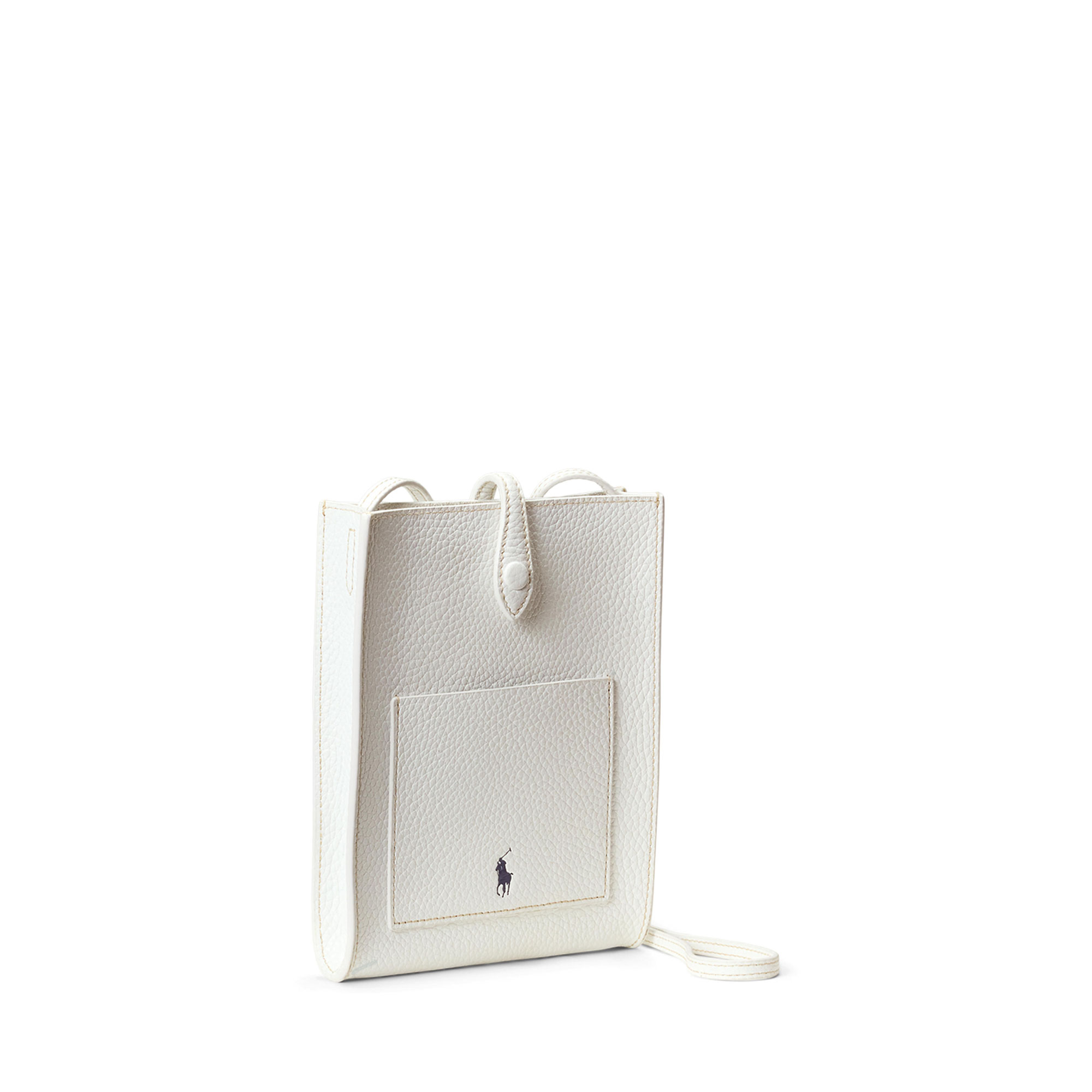 - Polo Play collection piece, Italian pebbled leather, crossbody style, top snapped closure, external snapped leather tab at the top opening, external slip pocket, signature Pony logo detail, logo signature at reverse side, Polo Play dust bag