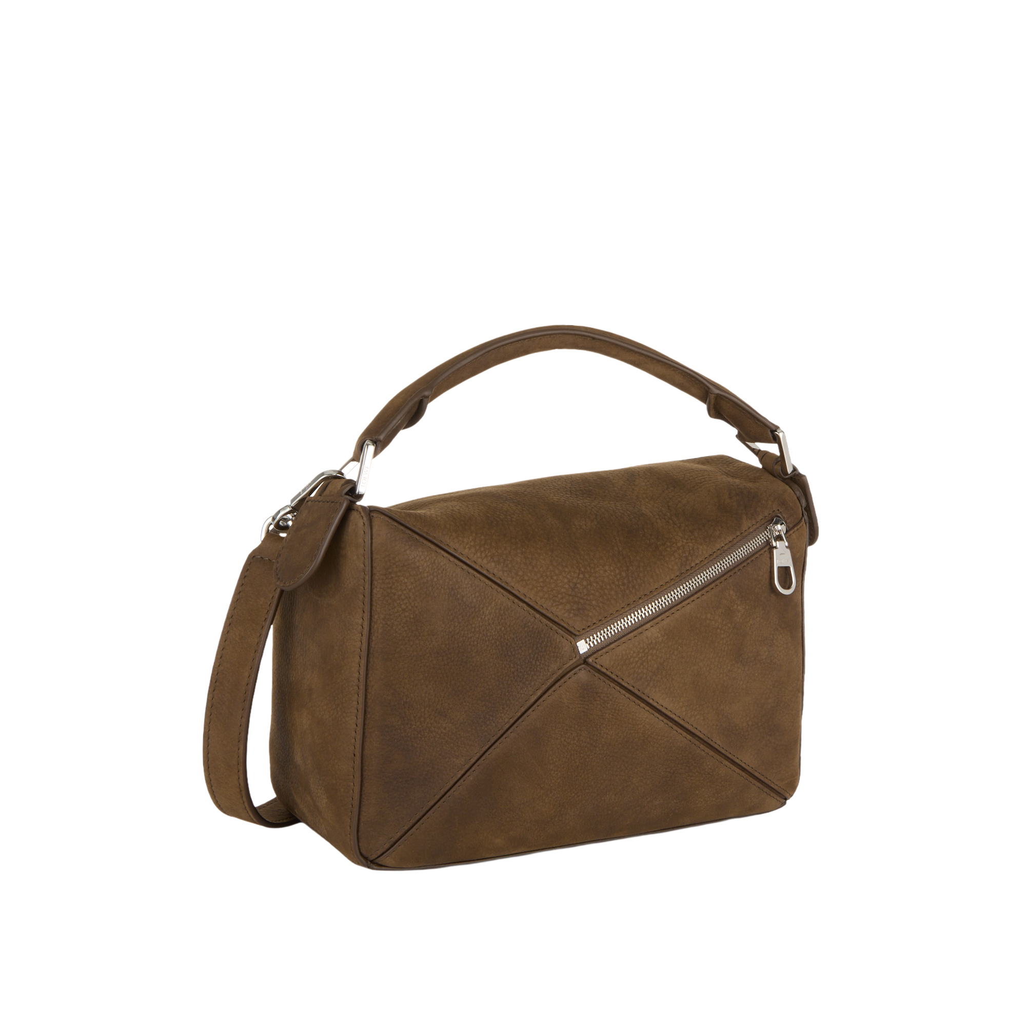 - Top handle, flap closure, top zip fastening, detachable and adjustable crossbody strap, puzzle silhouette, embossed logo detail, silver-tone hardware, zipped pocket, tonal stitching