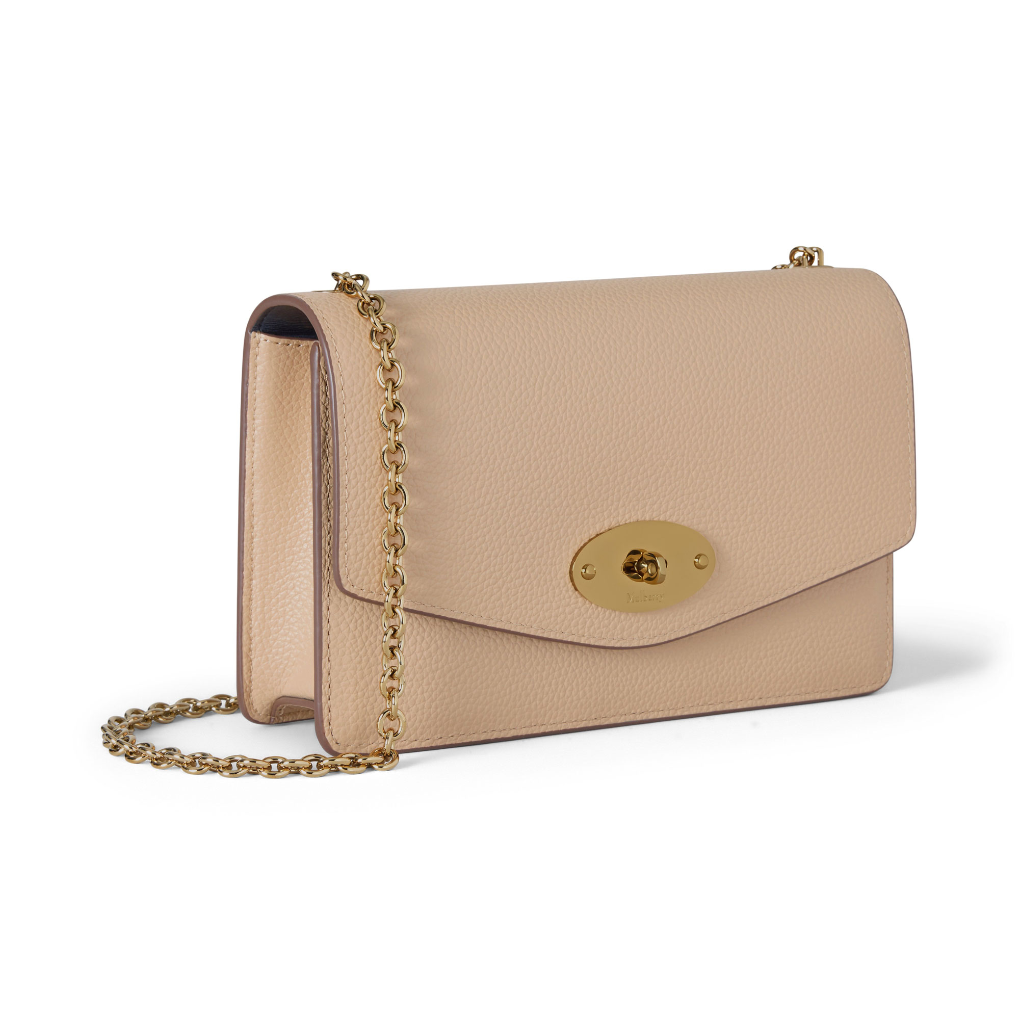 The Small Darley is a classic bag that celebrates the iconic Mulberry Postman’s Lock. It’s perfect for carrying essentials or keeping valuables secure inside a large tote. Its elegant envelope silhouette can even be transformed into a clutch due to its detachable chain strap.