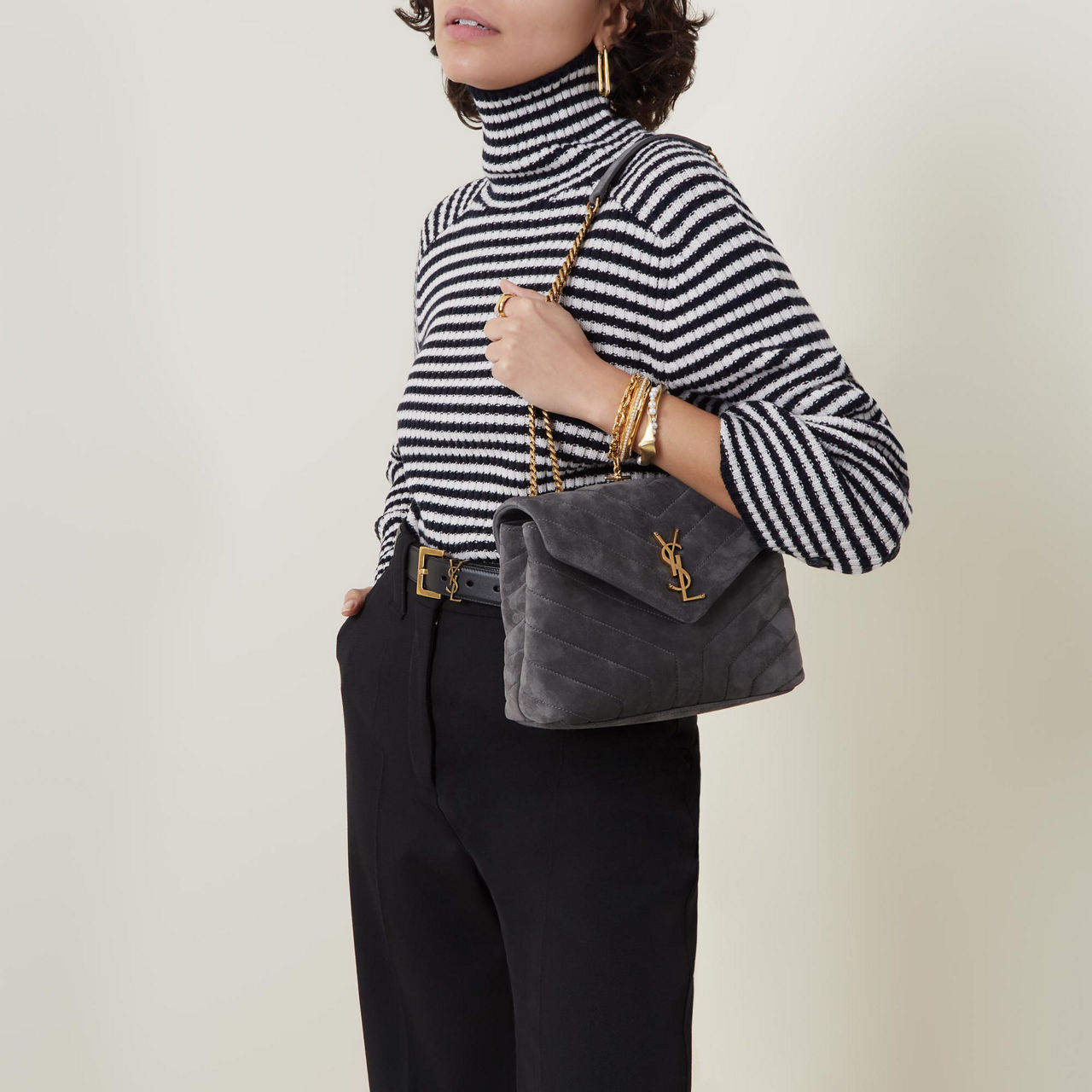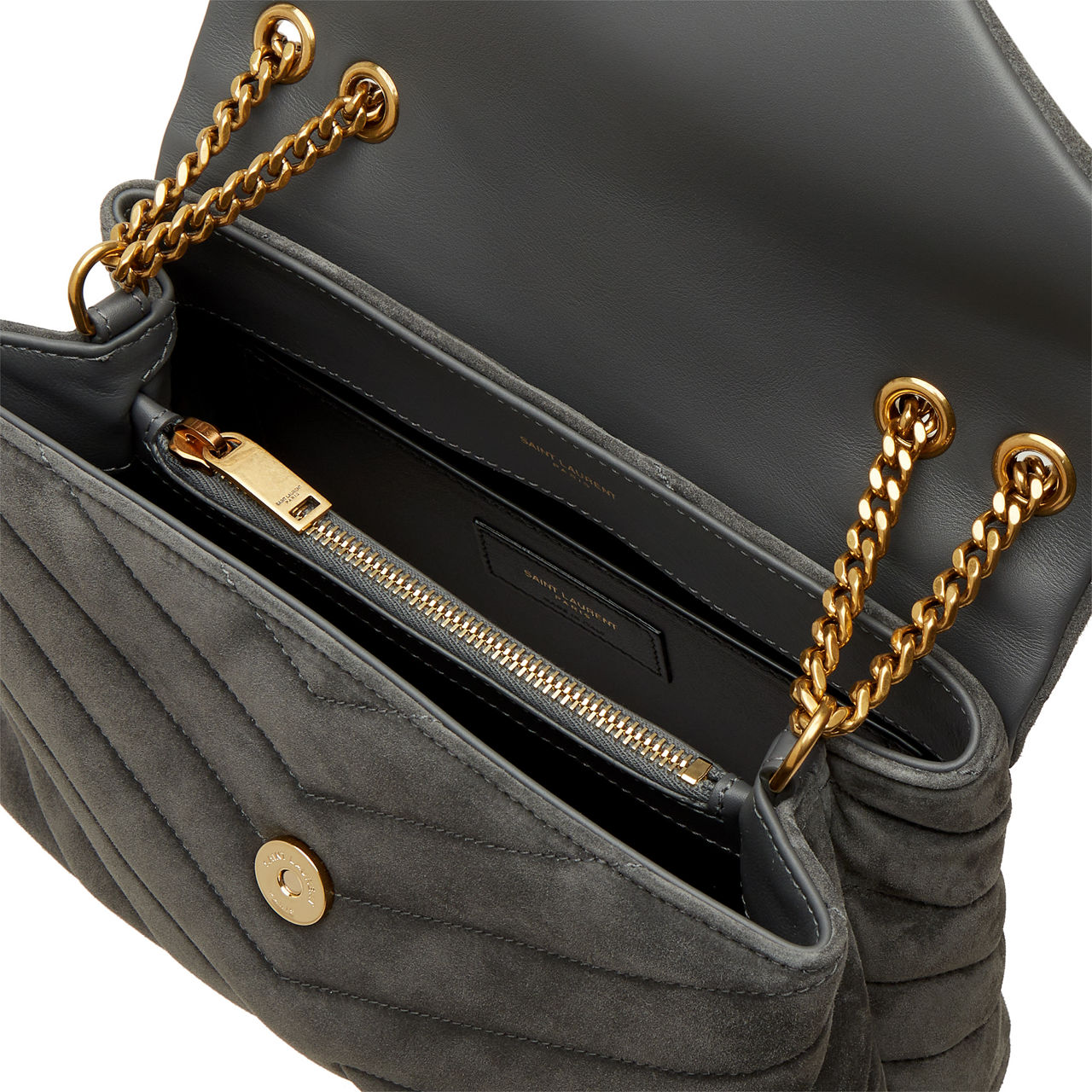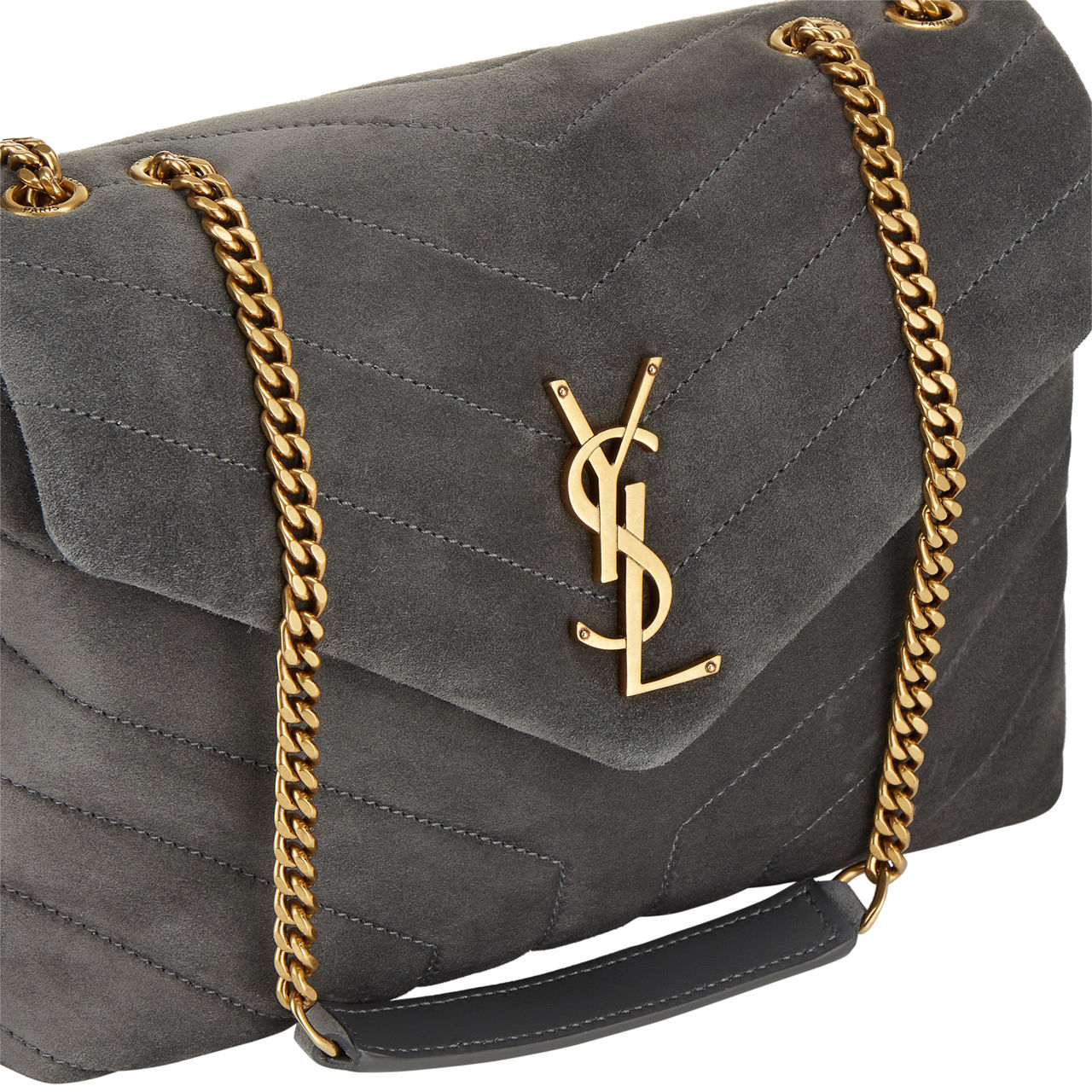 SAINT LAURENT Lou Lou Small Quilted Suede Shoulder Bag