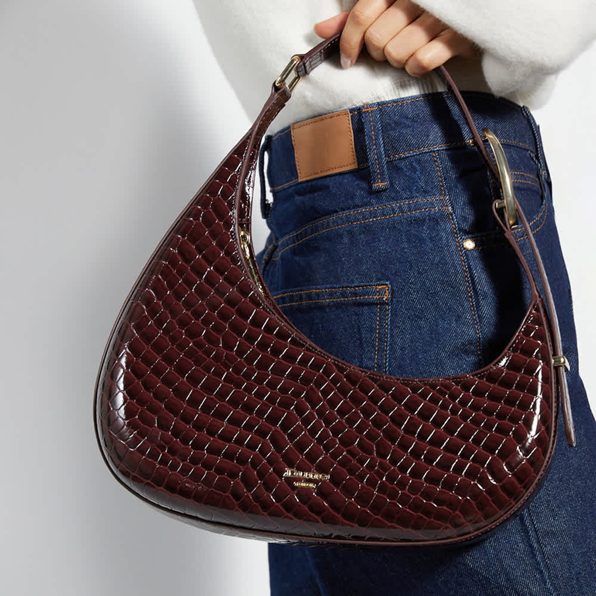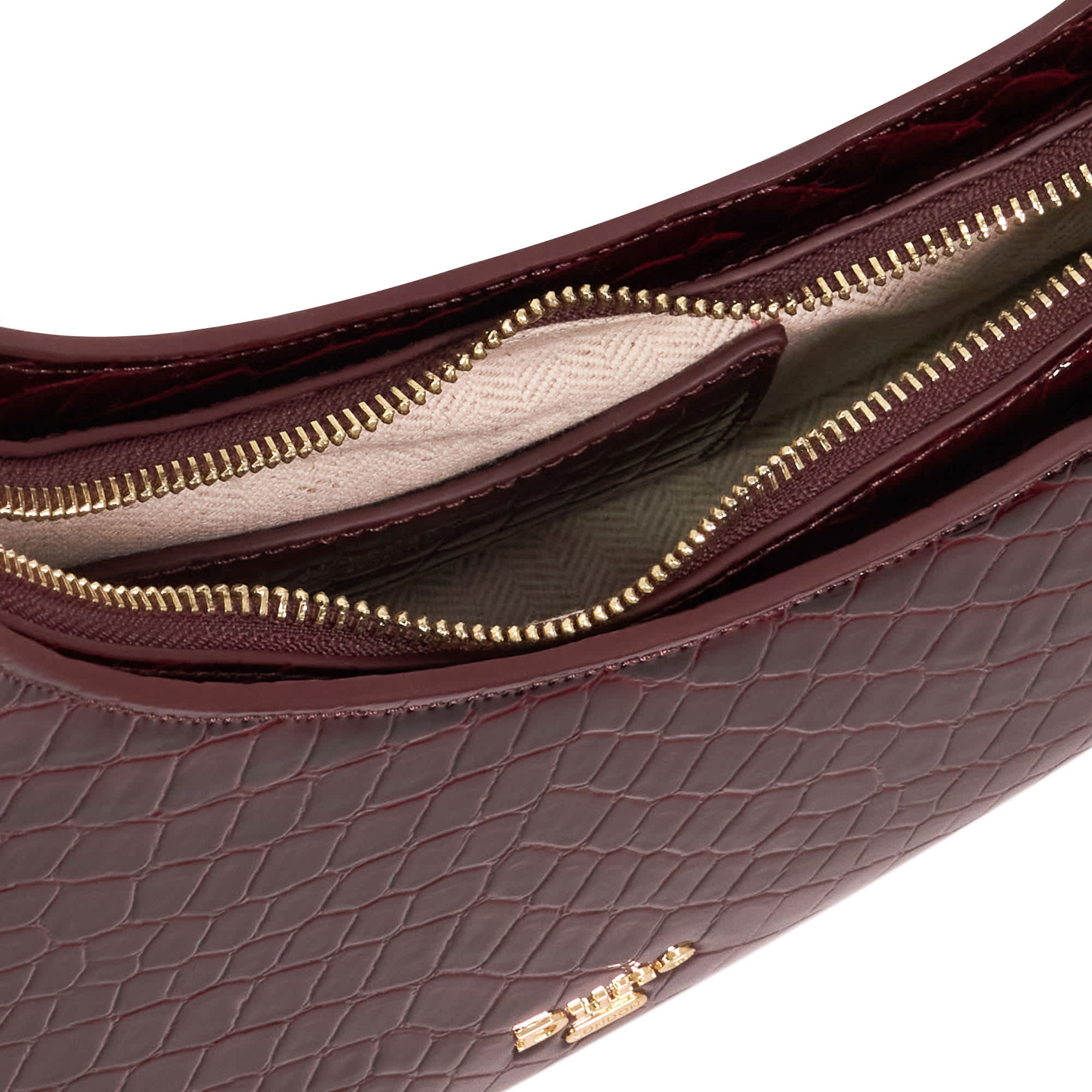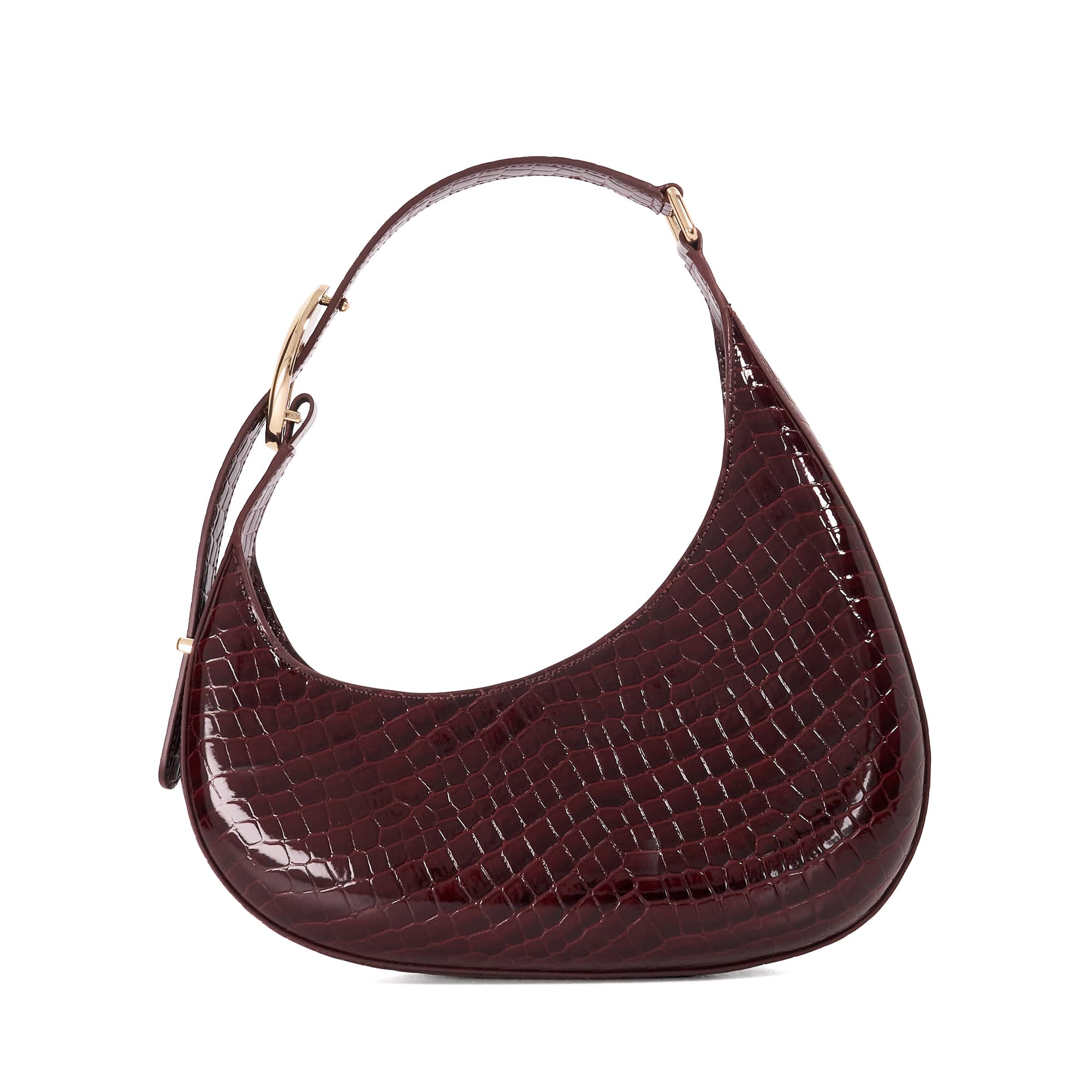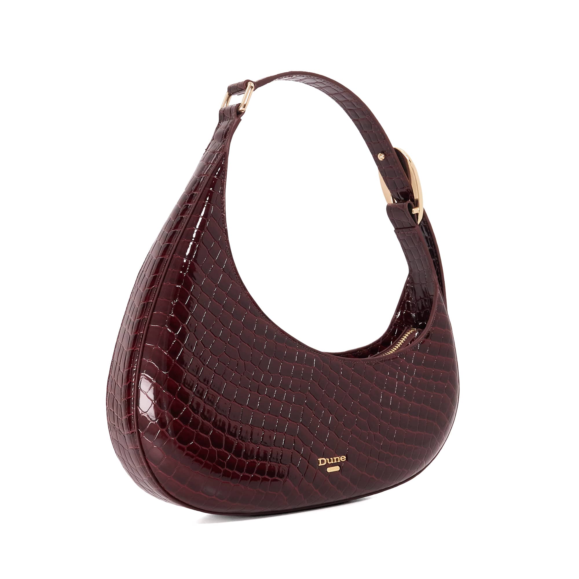 • Asymmetric style, reptile-effect leather, adjustable shoulder strap, gold-tone buckle, metal trim, textured finish