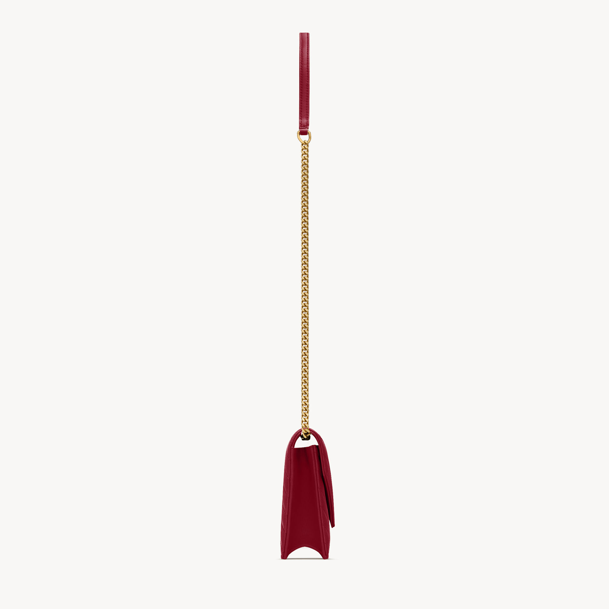 - Chain strap, Cassandre logo, chevron-quilted topstitching, bronze-tone hardware, snap-button closure