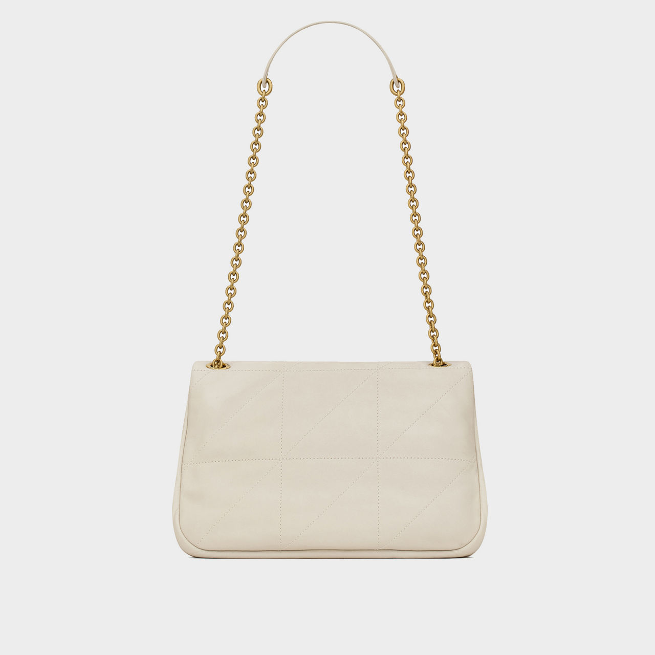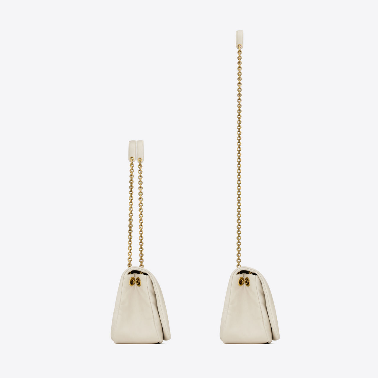 • Carré rive gauche quilted topstitching, adjustable sliding chain strap, logo detail, cotton lining, bronze-toned hardware, one flap pocket at the back, snap fastening
