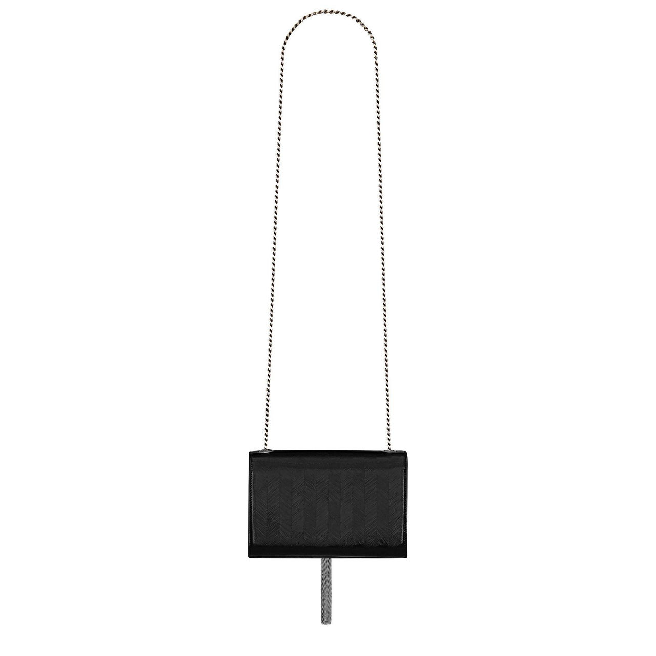 Add a polished finish to outfits with Saint Laurent's Kate Tassel Shoulder Bag. Working a smooth grain de poudre shell and structured silhouette, it is elegantly finished with the brand's interlocking YSL initials and a silver tone tassel charm to the flap closure. Effortlessly understated, its chain strap lends itself to multiple styling options.