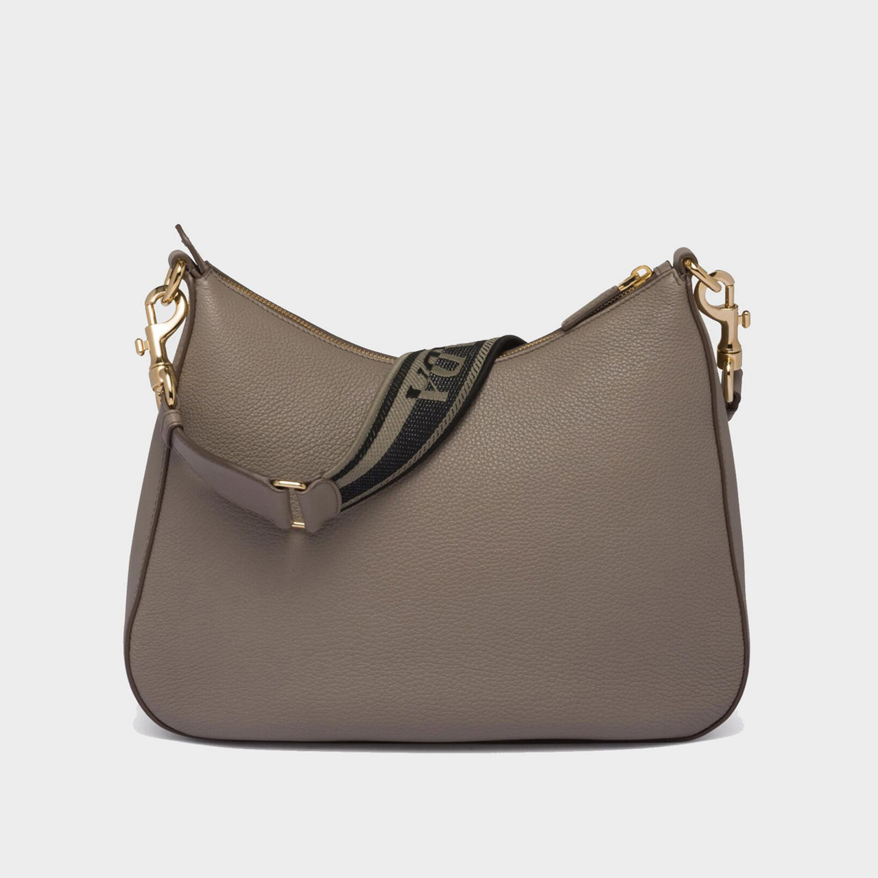 - Shoulder strap, detachable webbing strap, zip fastening, gold tone hardware, interior zip pocket