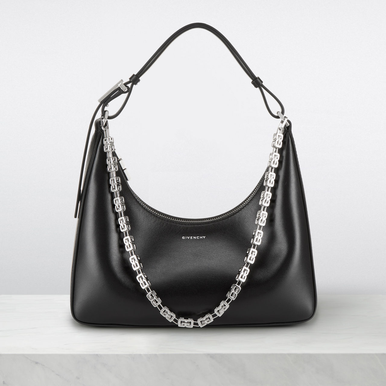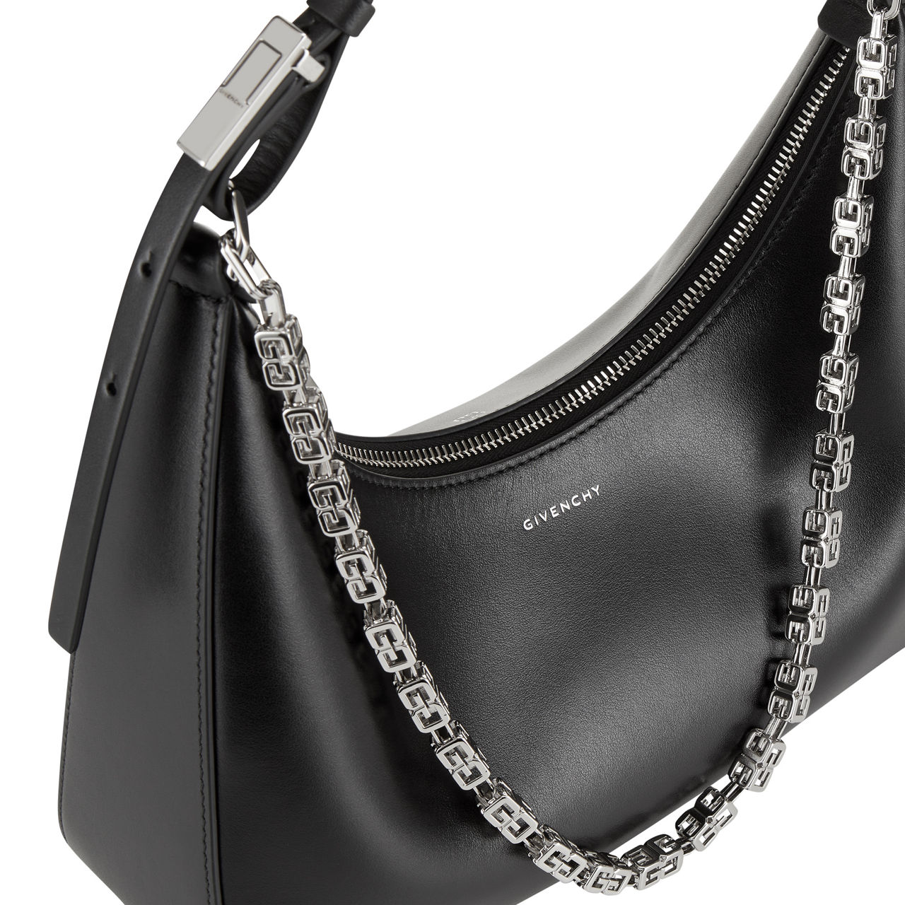 Timelessness is central to Givenchy, it informs the design of many of its creations including accessories like this shoulder bag. Inspired by the night sky, it's crafted from leather into the shape of a half moon, while it can be carried either by the adjustable shoulder strap or the logo chain.