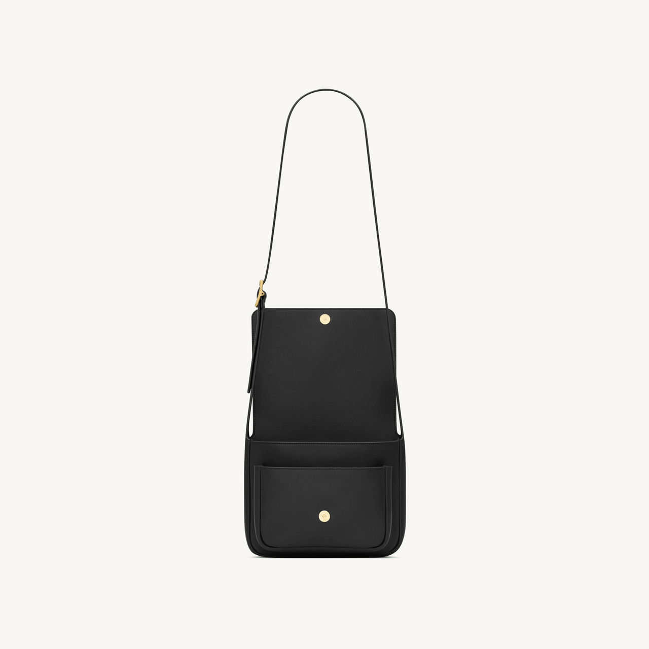 - Flap fastening with magnetic button closure, Cassandré logo detail, adjustable strap, suede lining, bronze-toned hardware, grained finish