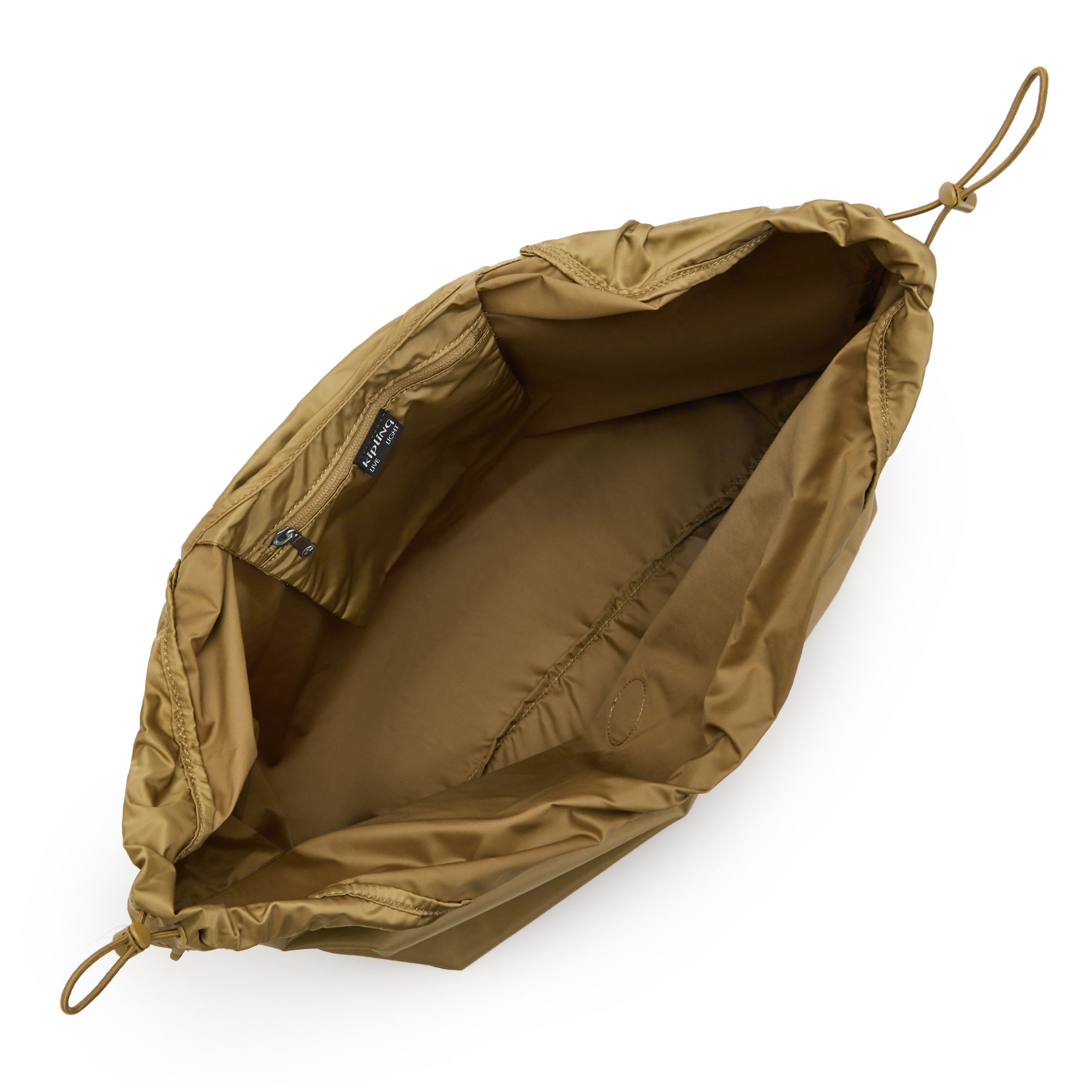 - One inside zipped pocket, one main open compartment, top handles, drawstring fastenings