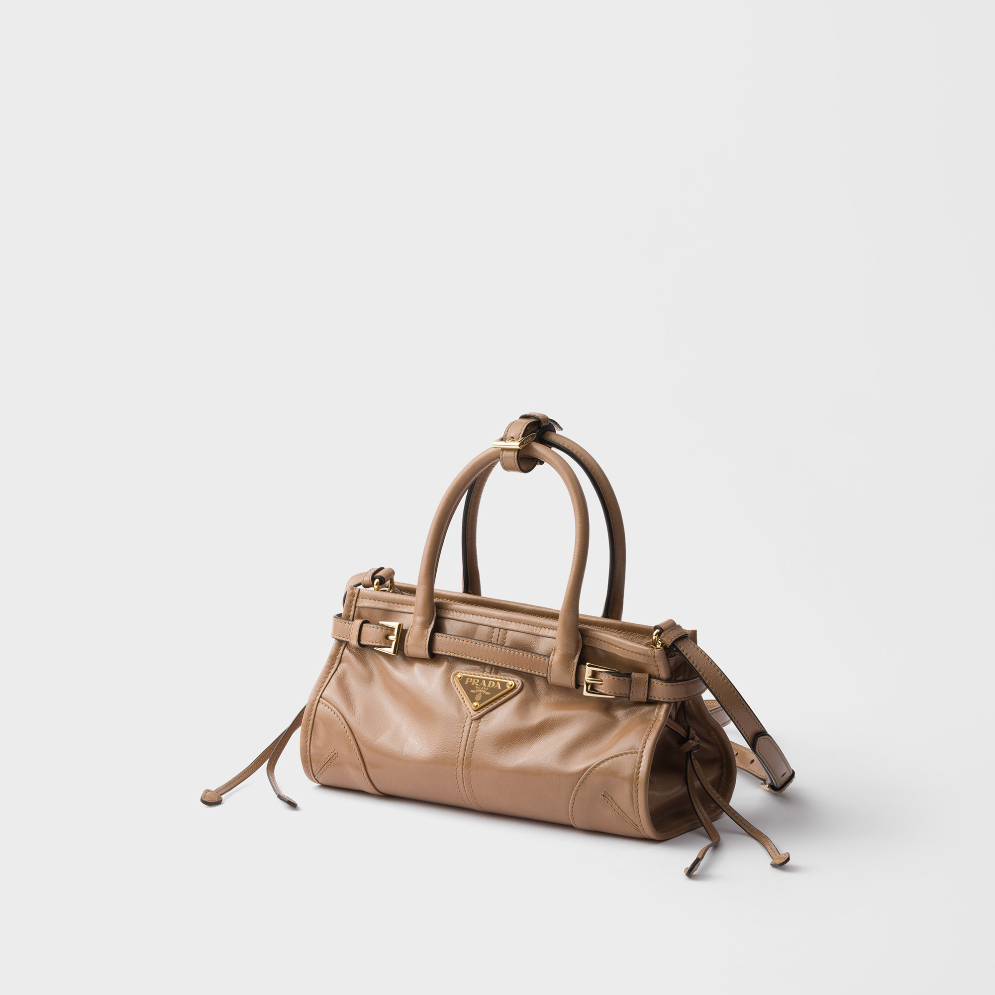- Zip fastening, leather top handles, detachable and adjustable shoulder strap, gold-tone metal hardware, enamelled triangle logo detail