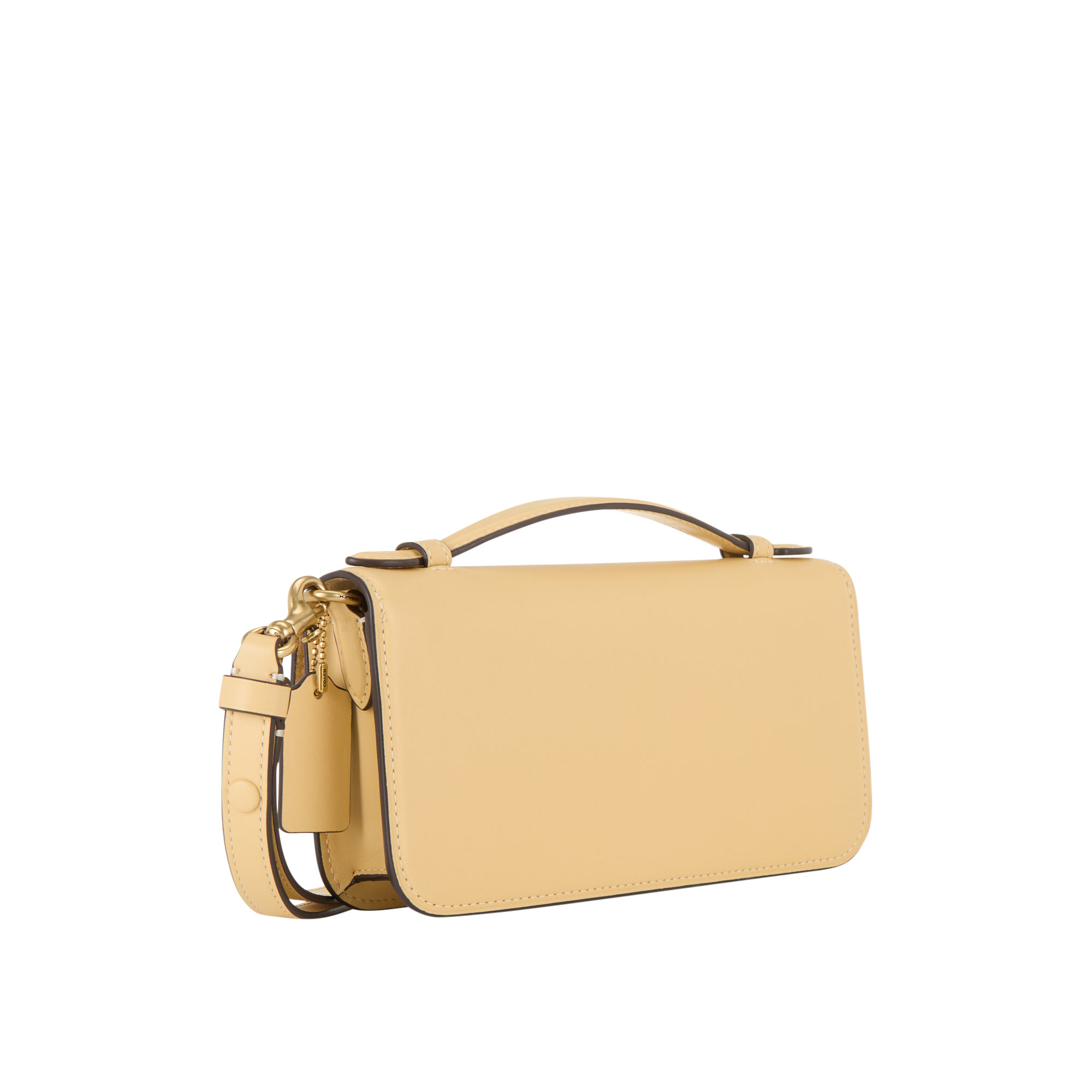- Top handle, gold-toned hardware, lobster fastenings, smooth finish, flap closure, crossbody strap