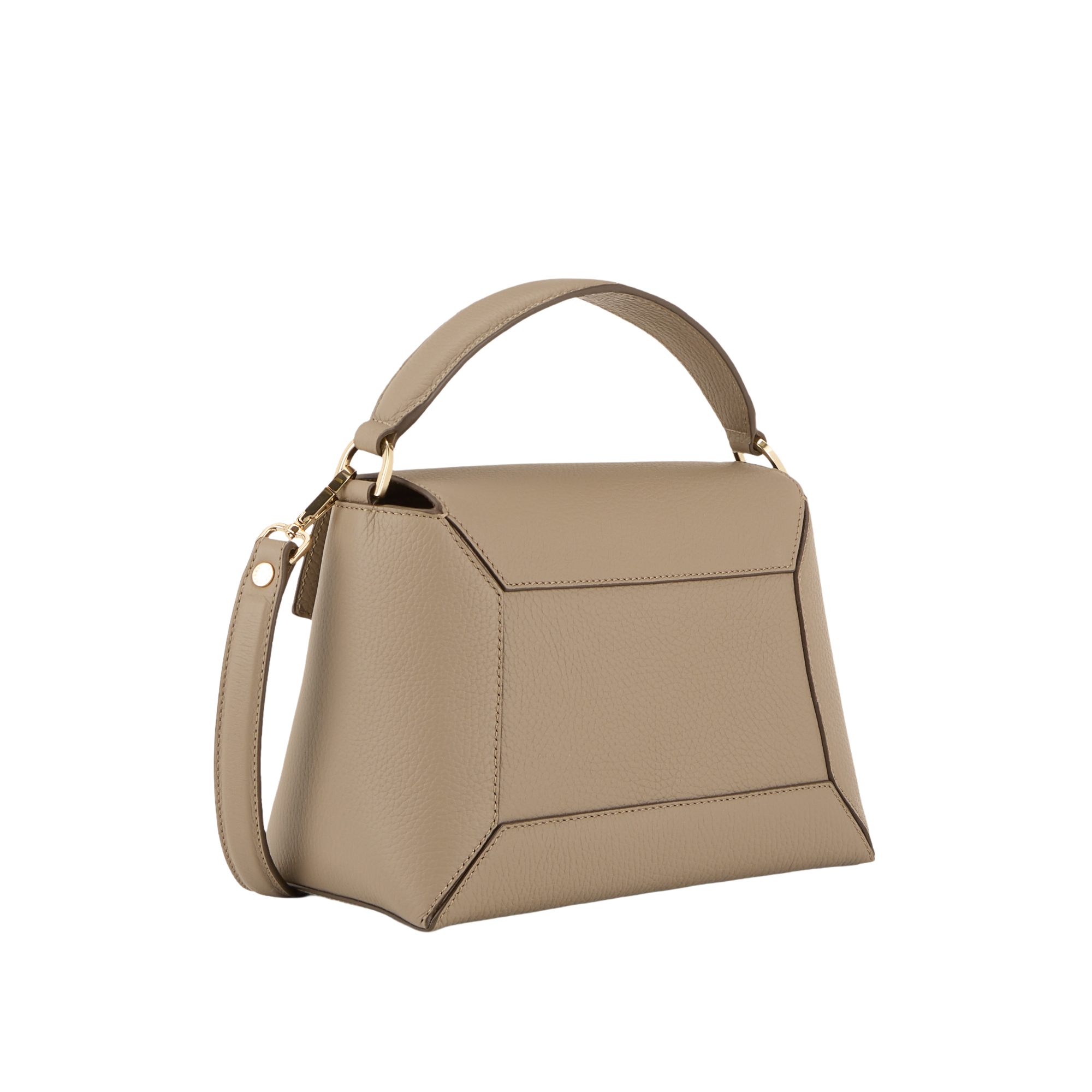 - Top carry handle, detachable and adjustable strap, flap fastening with dual magnetic button closure, distinctive Music Bar embellishment, grained finish, gold-tone hardware, foil logo details