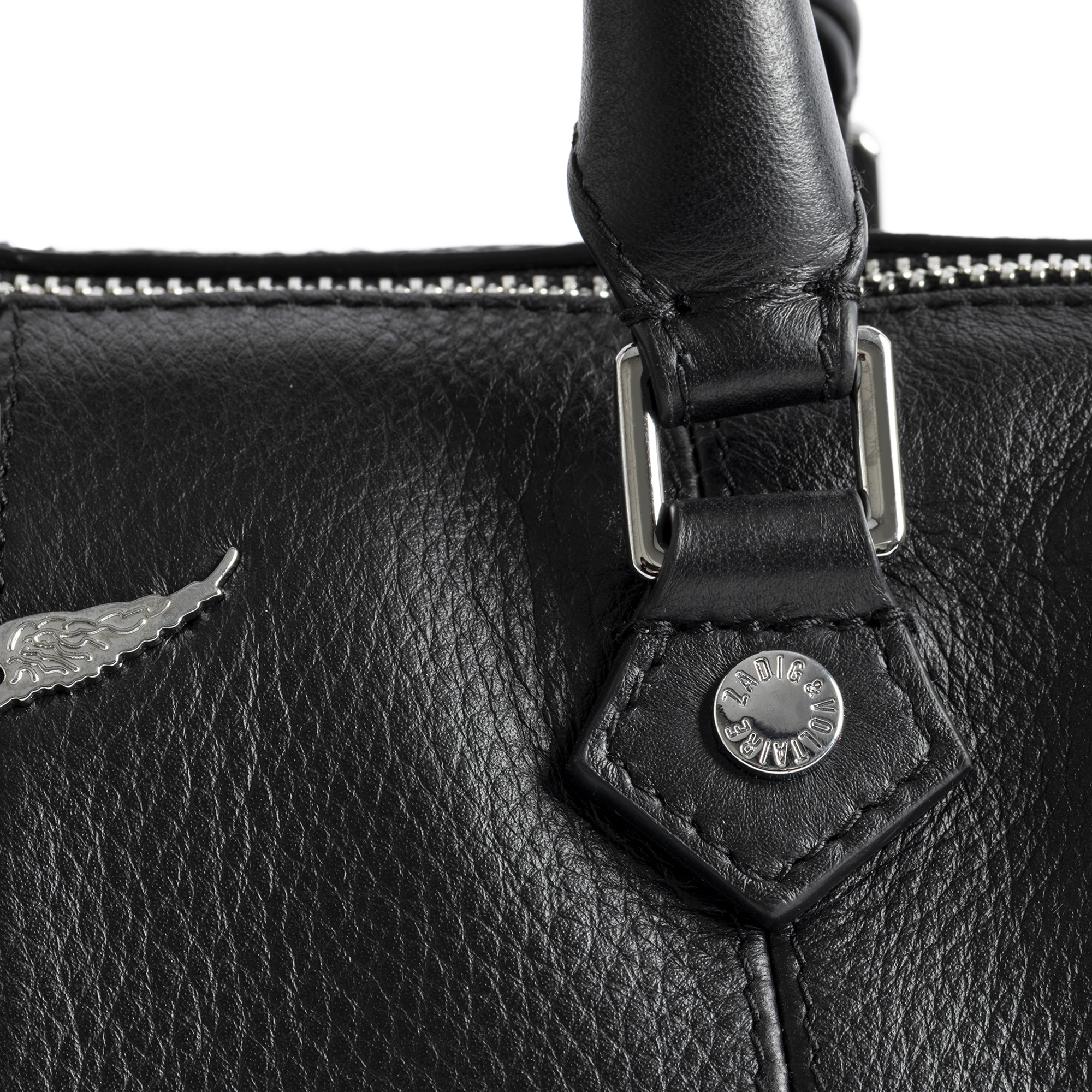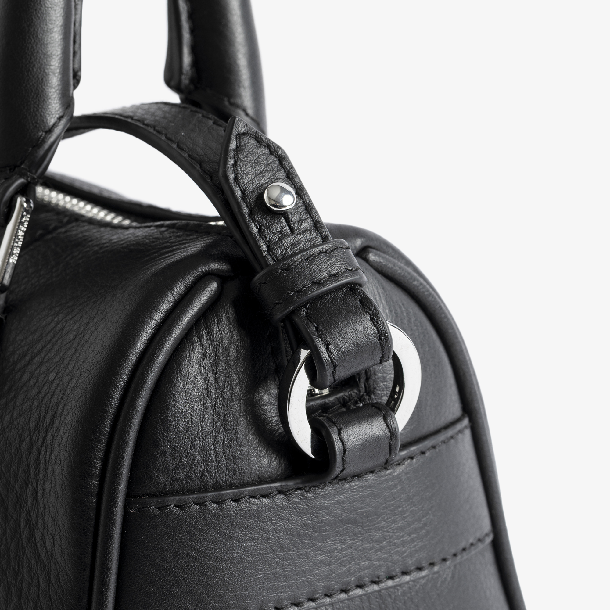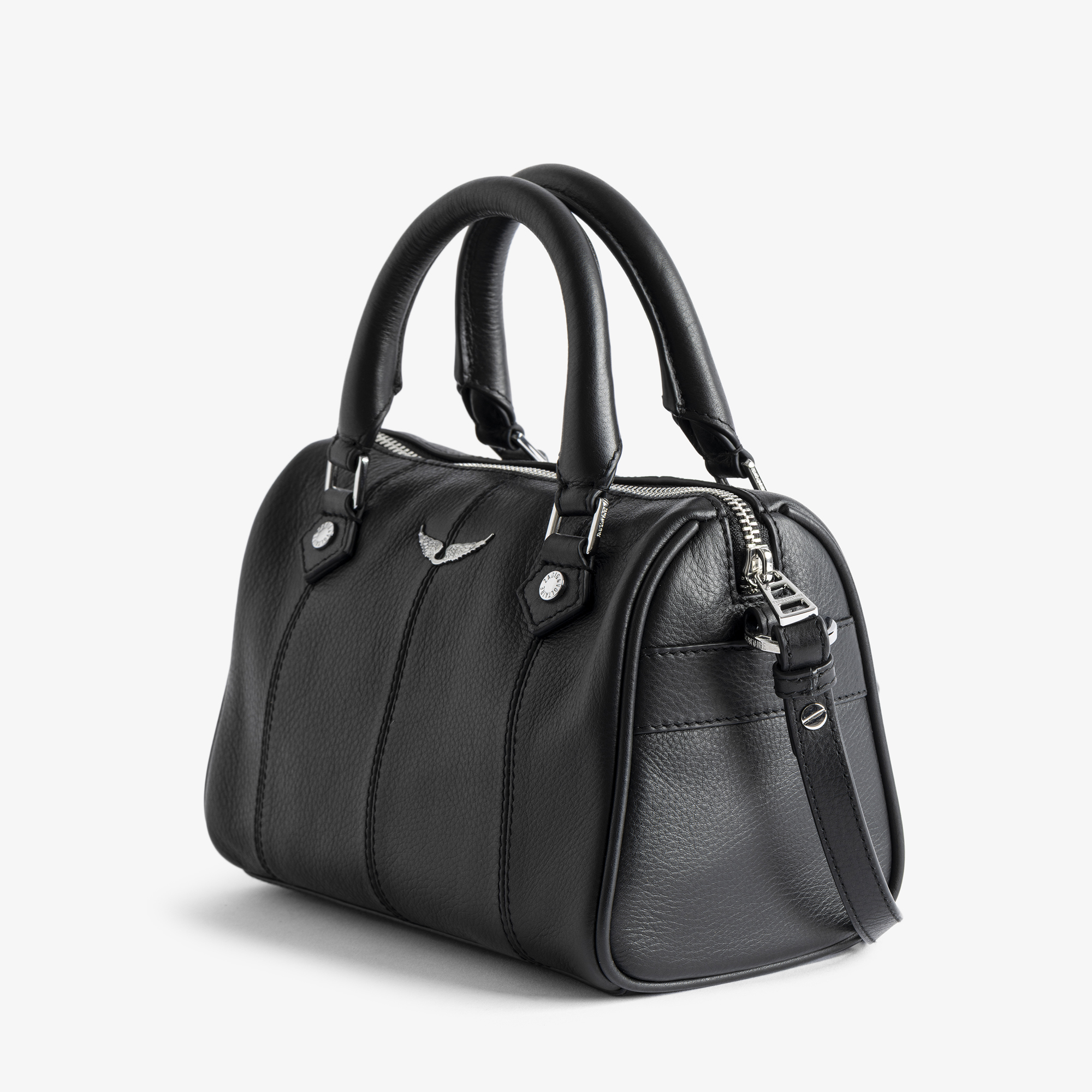 • Top handles, zip fastening, adjustable shoulder strap, signature Wing hardware, grained leather finish