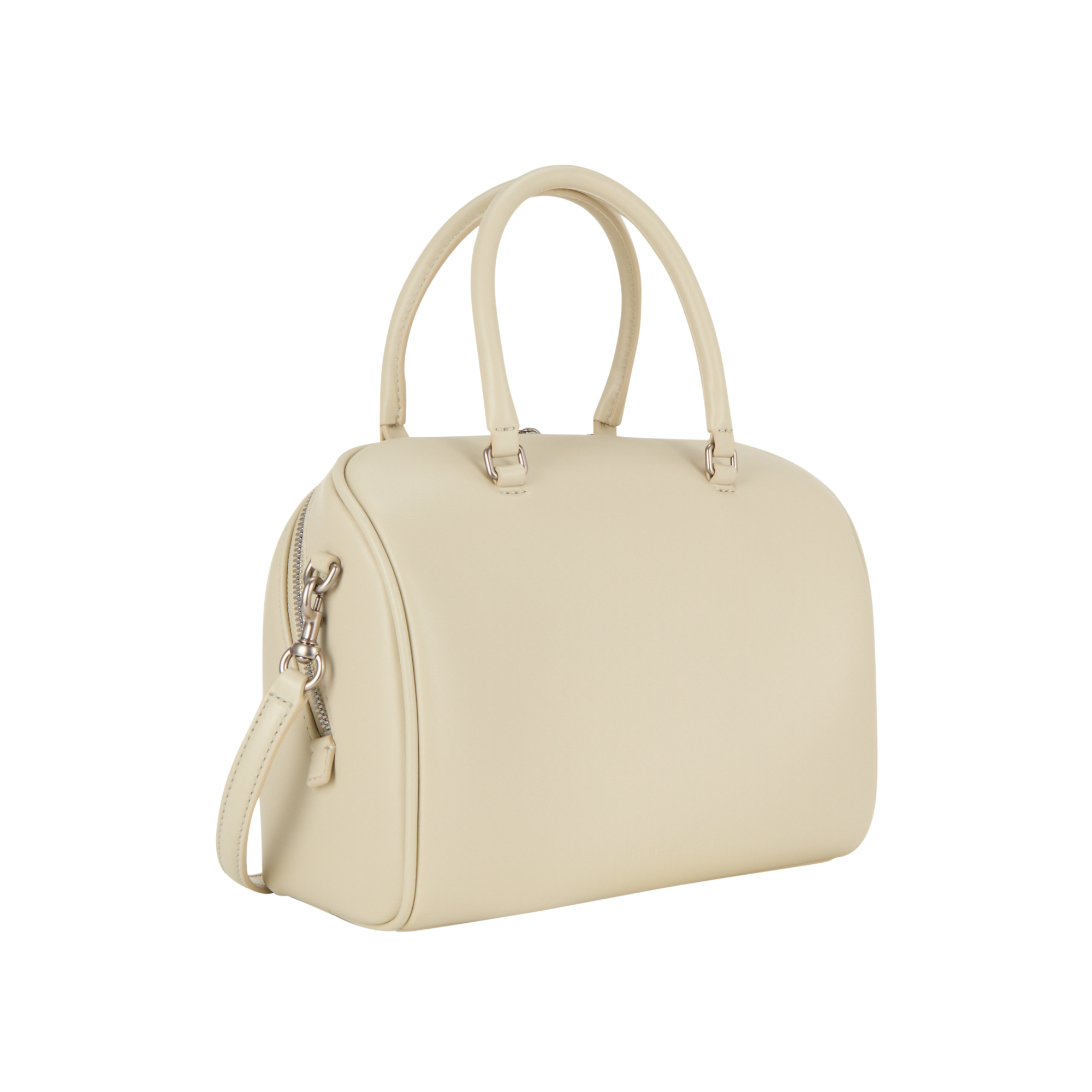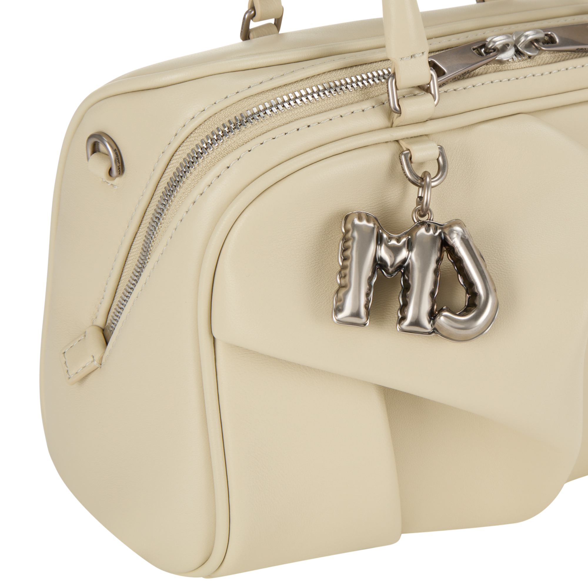 - Top handles, two-way zip around fastening, detachable and adjustable crossbody strap, monogram logo charm, silver-tone hardware, folded design, smooth finish
