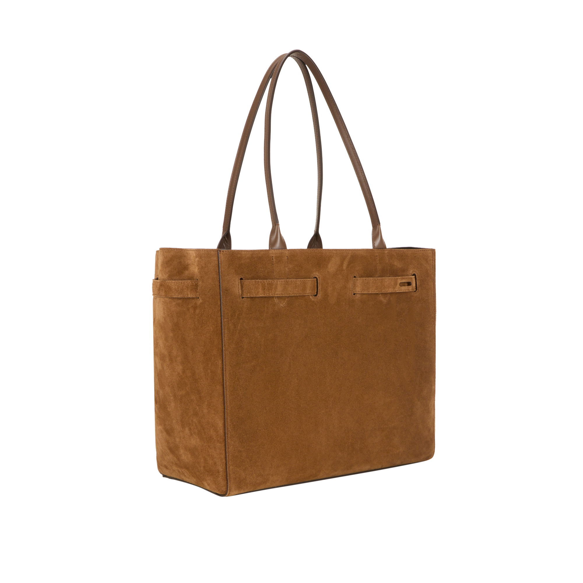 - Top carry handles, open top, belt detailing, gold-tone hardware, boxy silhouette, logo details