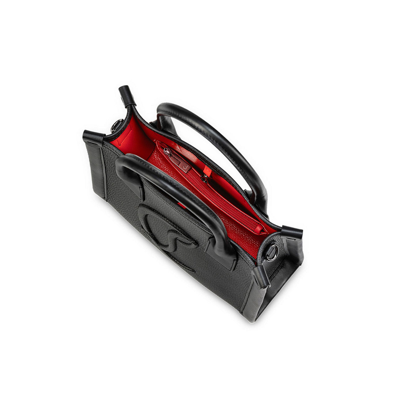 - Top carry handles, adjustable and detachable strap, safety clasp fastening, logo details, silver-tone hardware, red lining