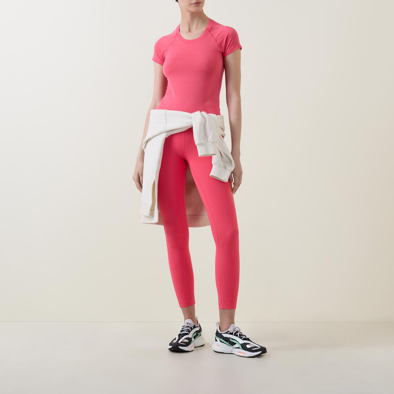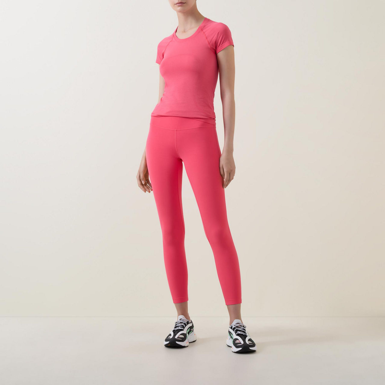 - Disguised waistband pocket, above ankle length, four-way stretch, sweat-wicking and breathable fabric, additional Lycra® for stretch and shape retention