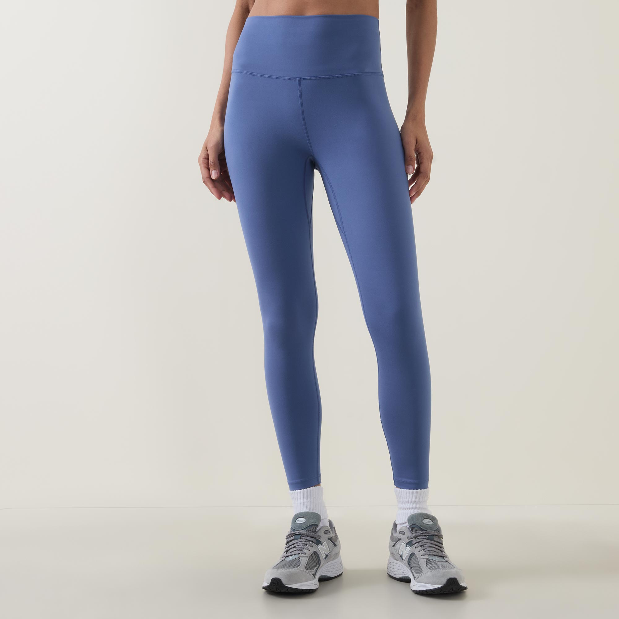 - High-rise, rolled waistband, tapered inseam panel, four-way stretch, moisture-wicking, light compression, FreeSoft™ fabric, buttery soft finish