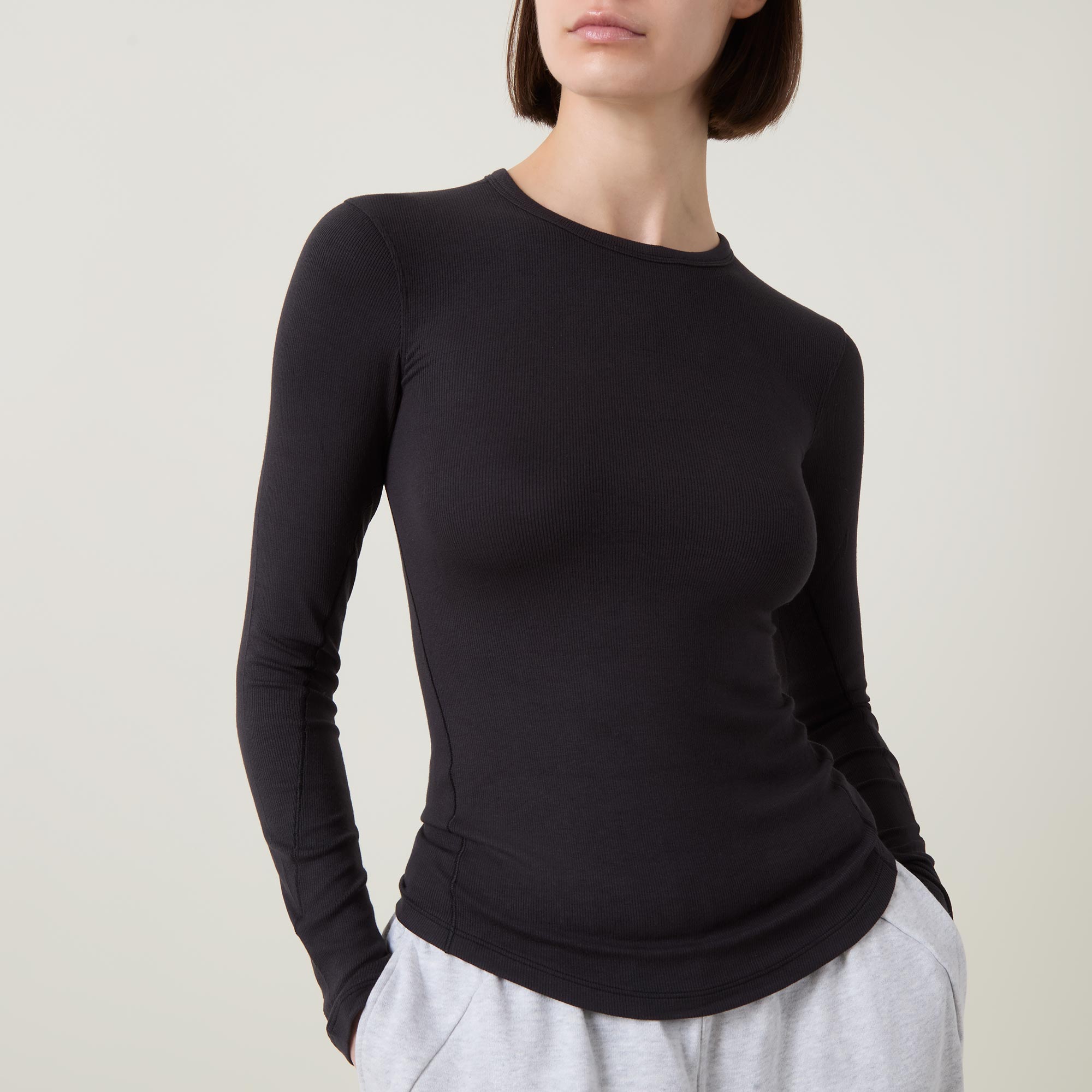 Super soft and loves to layer. This lightweight long sleeve delivers just-right stretch and a second-skin fit that wears well on its own or as a base.