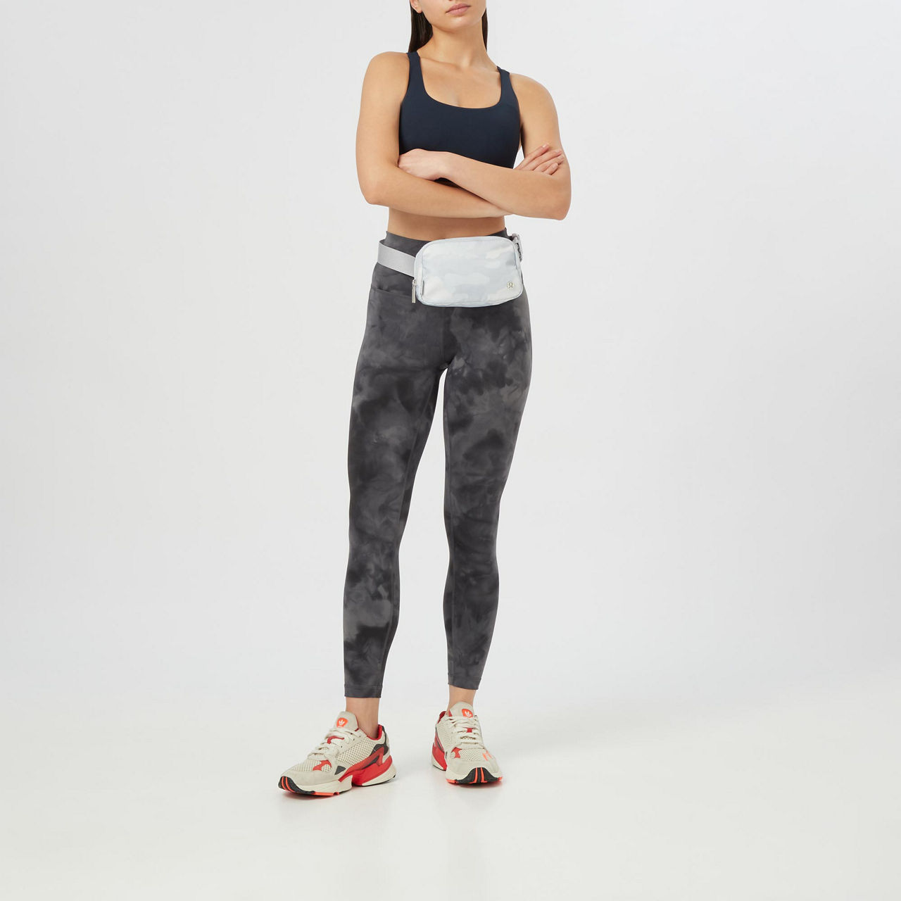 - High rise, quick-drying, sweat-wicking, camouflage print.