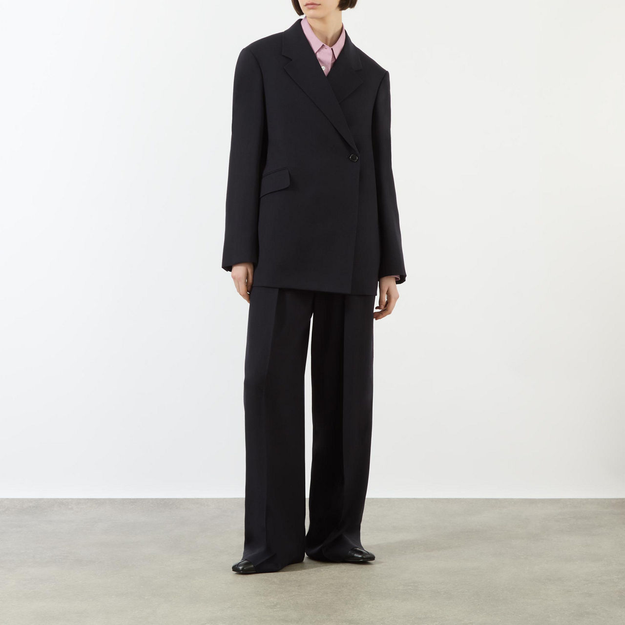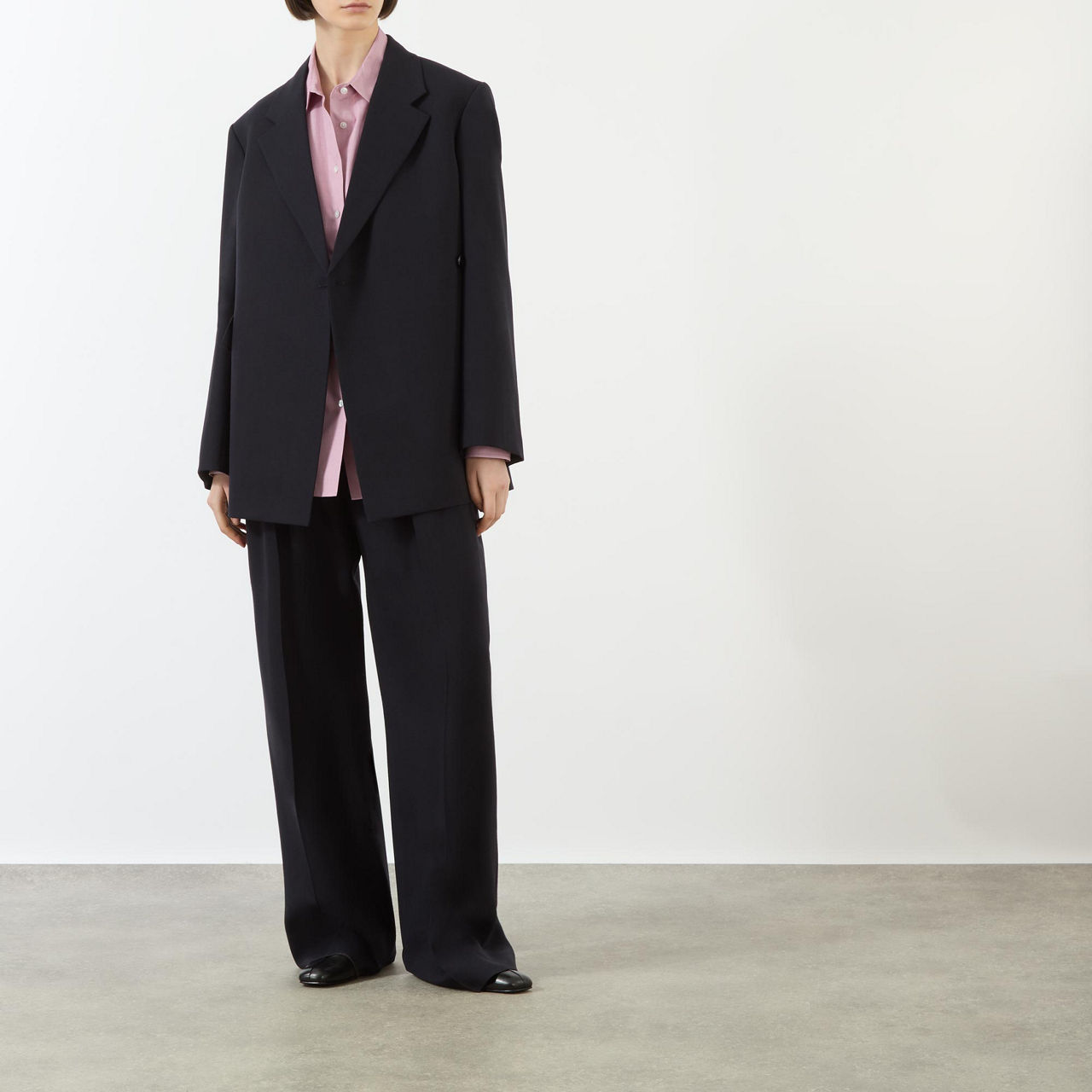 This season, The Row's garments exude a more relaxed appeal with oversized, slouchy silhouettes. The Azul blazer, for example, is spun from pure virgin wool to a casual fit and is distinguished by notched lapels with long sleeves. The label elevates its style with a one-button closure and finishes the look with one flap pocket at the side for stashing your things.