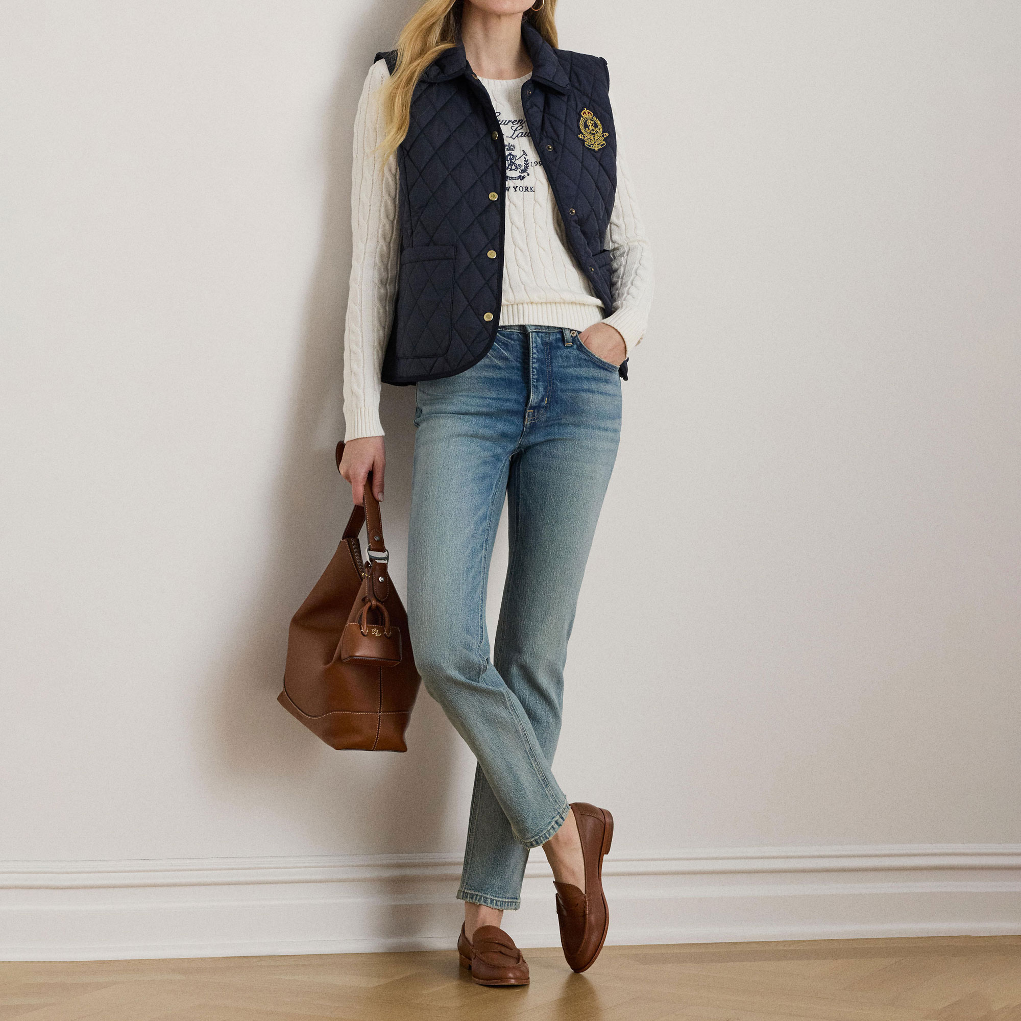 LAUREN Crest Logo Diamond Quilted Gilet