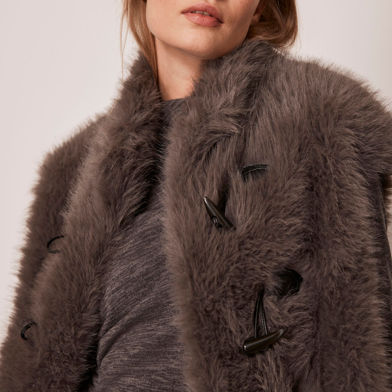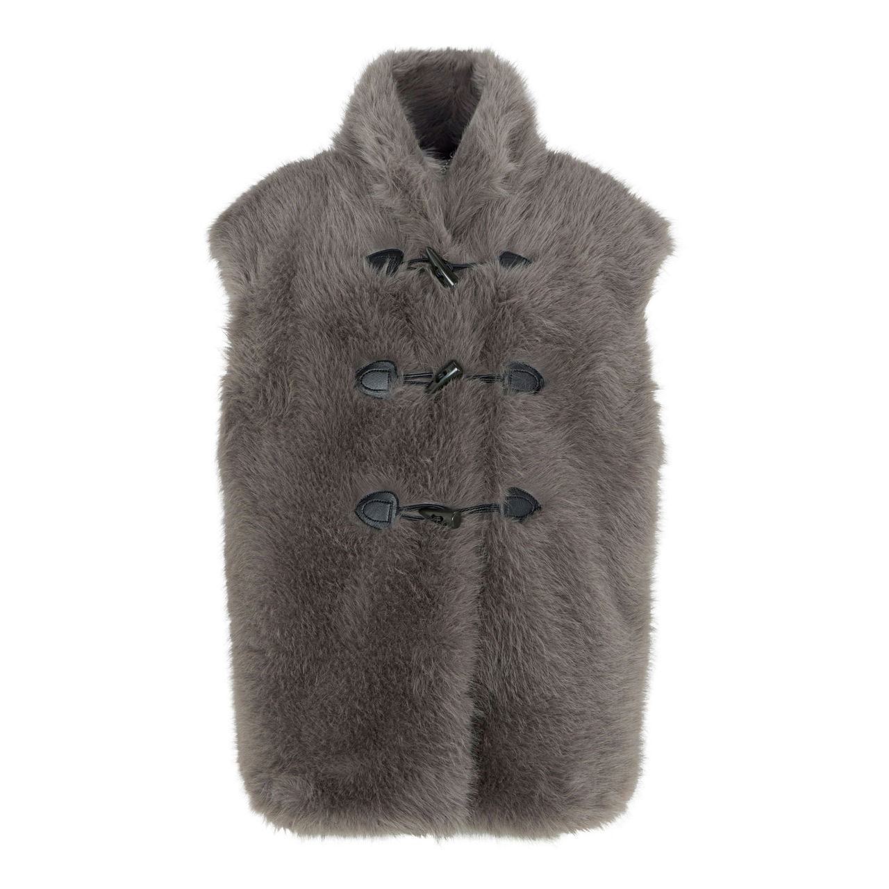 - High neckline, toggle and loop fastening, faux fur finish, sleeveless, lined