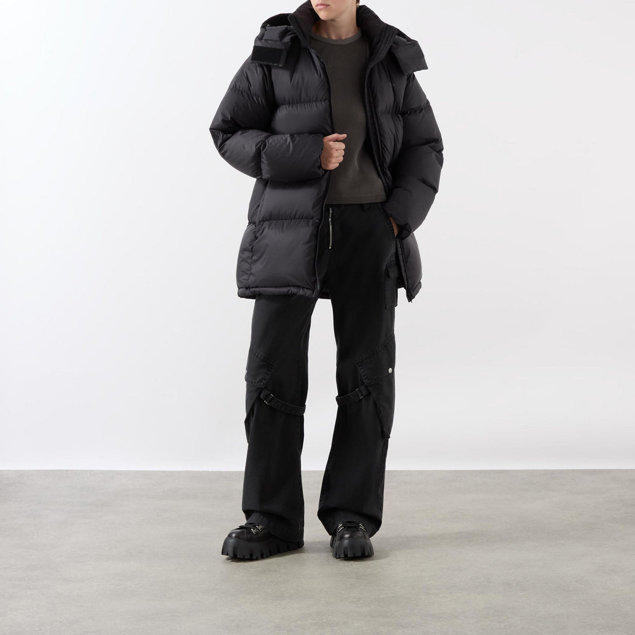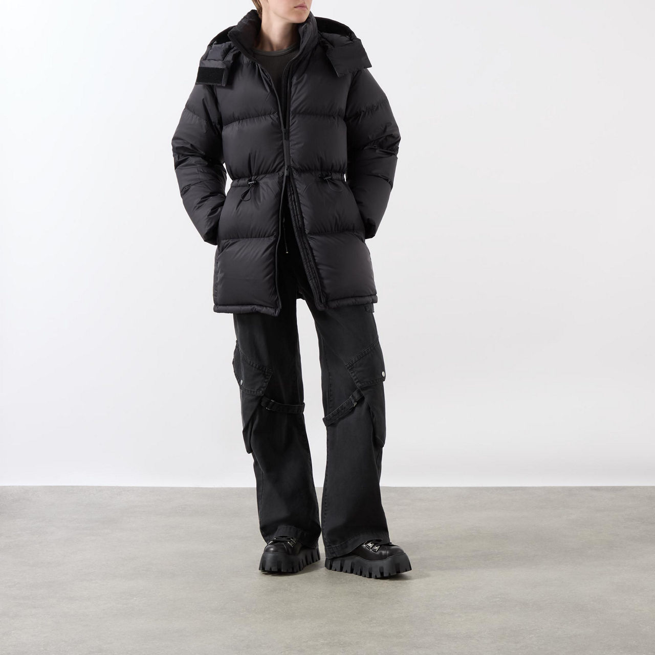 - Detachable hood with zip fastening, Velcro closure, teddy-lined collar, long sleeves, rib-knit cuffs, two-way front zip fastening, teddy-lined placket, two side entry pockets, adjustable drawcord waist, straight adjustable hem, quilted design, padded