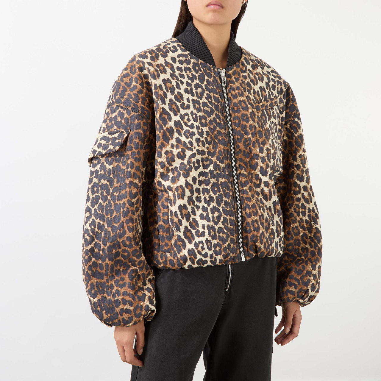 GANNI Leopard Print Bomber Jacket