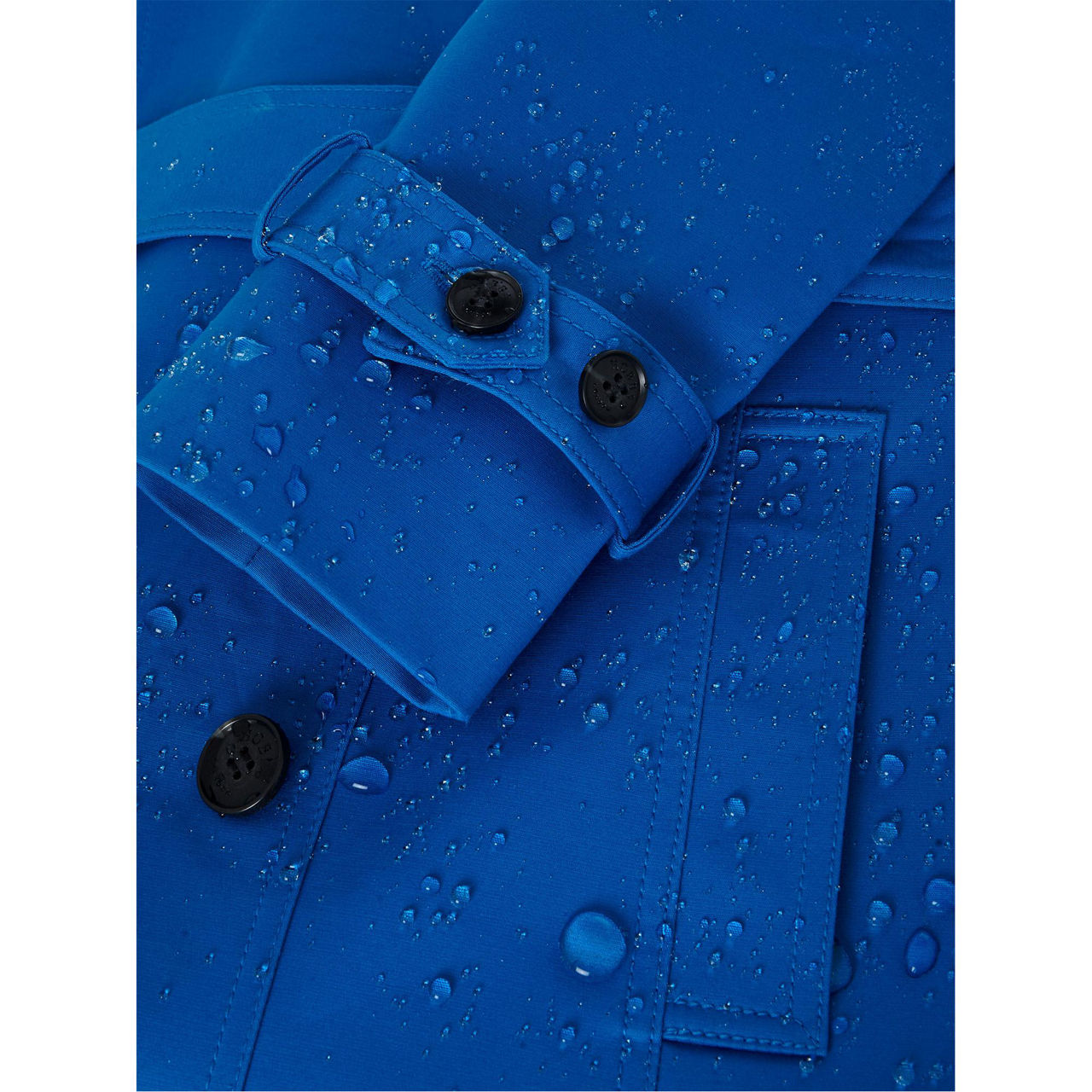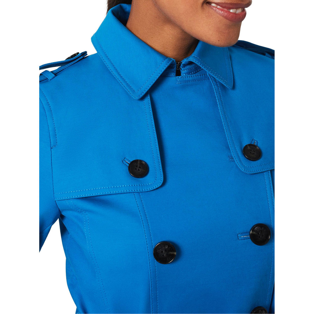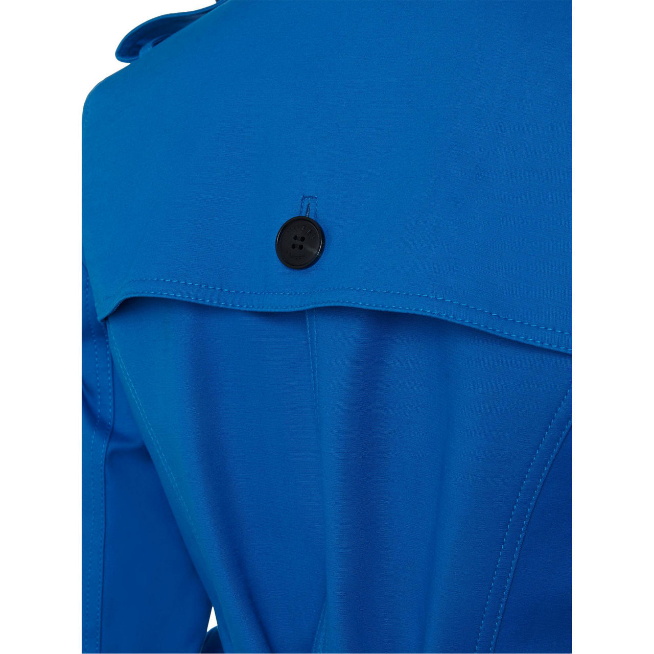 - Double-breasted cut, belted waist, belted cuffs, collar, storm flap, shoulder epaulettes, shower resistant