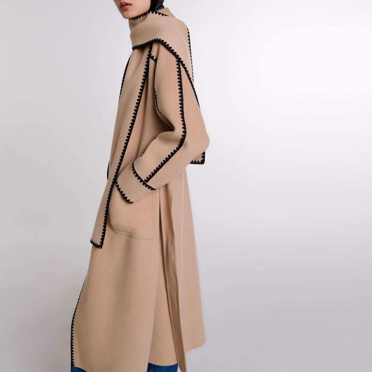MAJE Topstitch Scarf Belted Coat