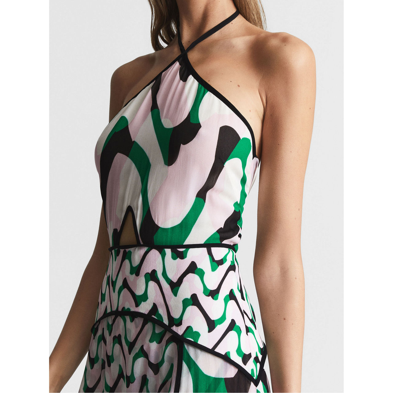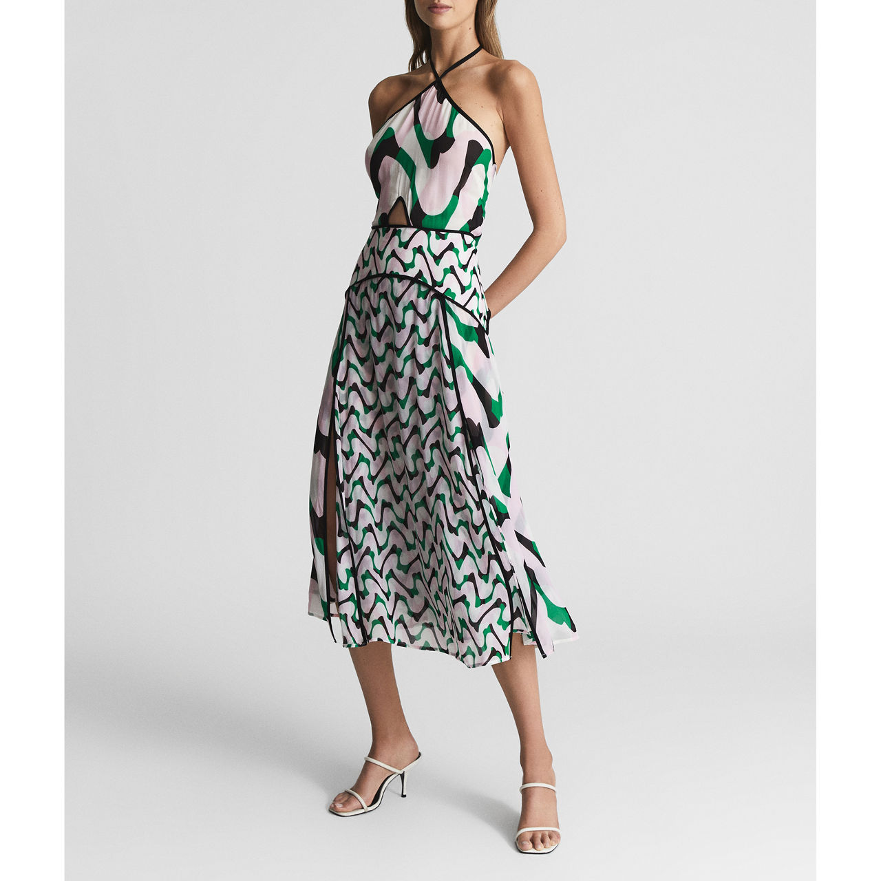 Turn heads in the Alex dress from Reiss. This dress exudes visual appeal thanks to it's abstract print, halter neck design and tie at the back. Just add heels to complete the look.