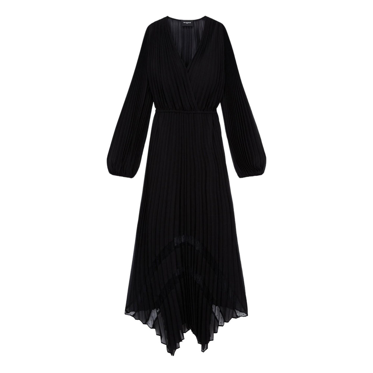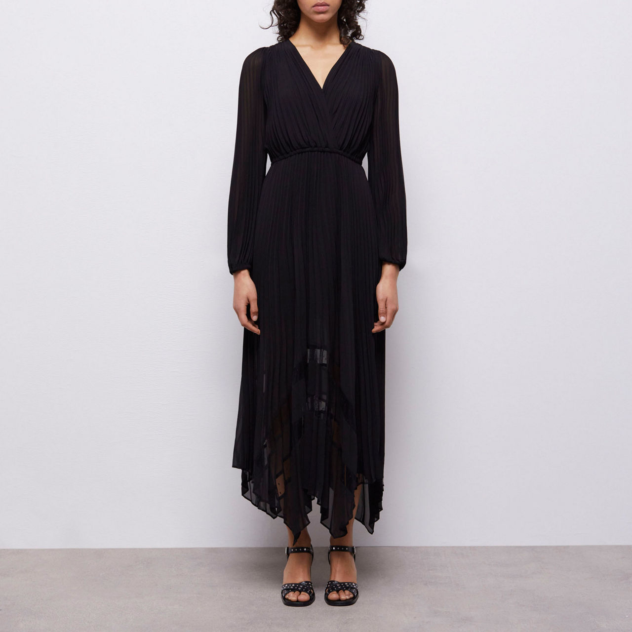 This dress by The Kooples, characterised by fluid sun pleats, strikes the perfect balance between a retro and a subversive, contemporary aesthetic. It features a feminine V-neckline and an asymmetrical skirt for an exquisite bohemian flair, adding volume to the composition of this flowy design. Simply pair with your favourite sandals to lead your own Picnic at Hanging Rock.
