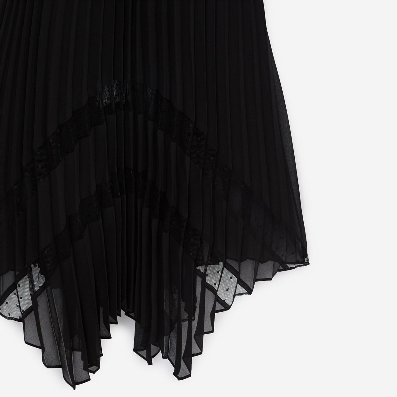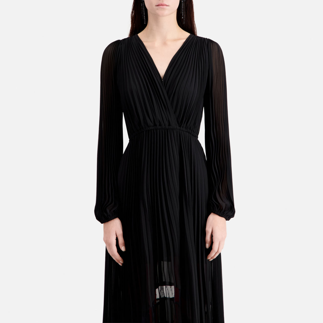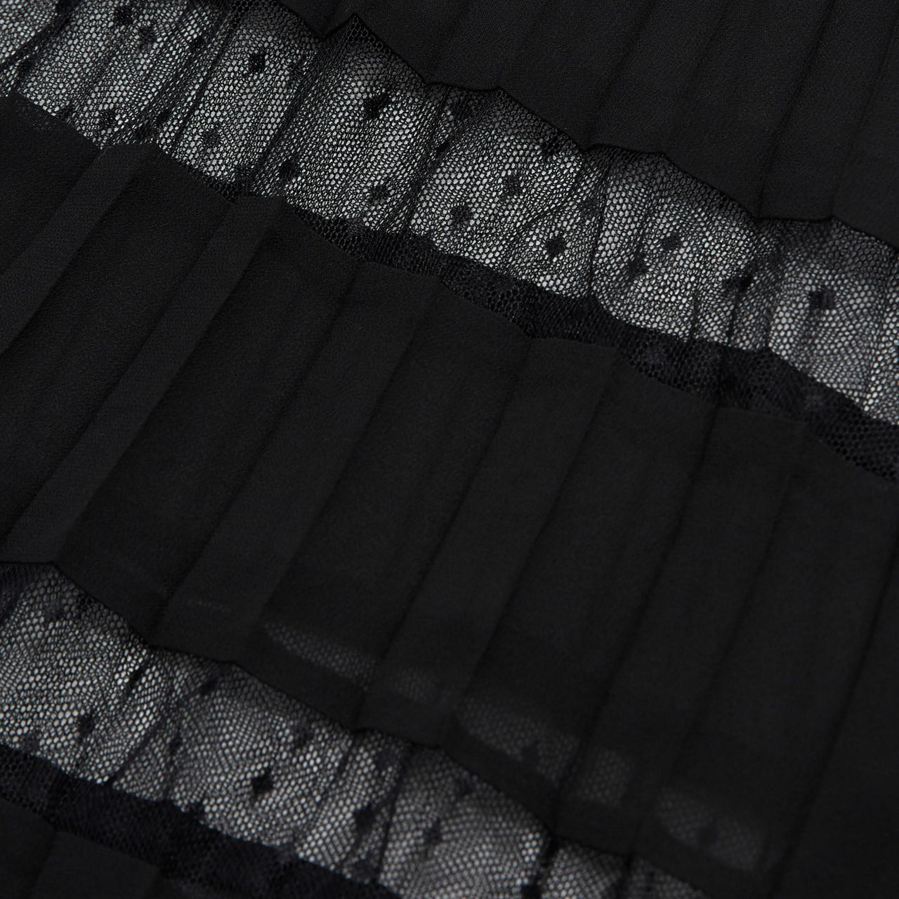 - Sun pleats, long sleeves, crossed V-neckline, adjusted elastic waist, elasticated cuffs, asymmetric flared skirt with lace details