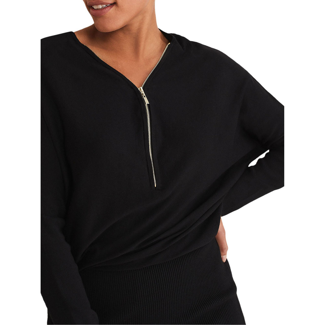 - Long sleeve, V-neck, zip detail, batwing sleeve, fitted skirt
