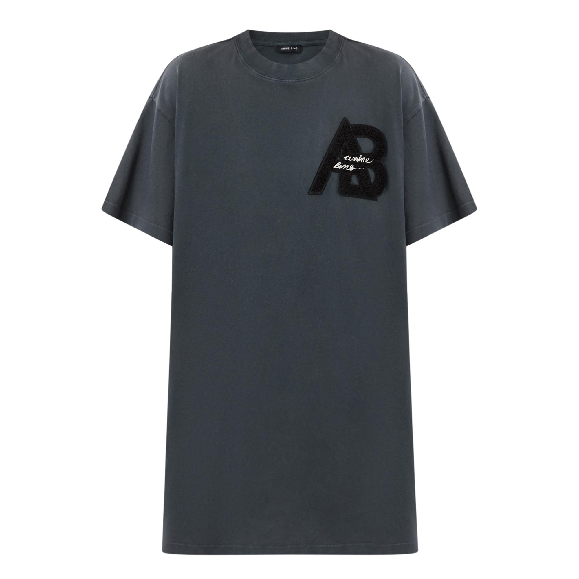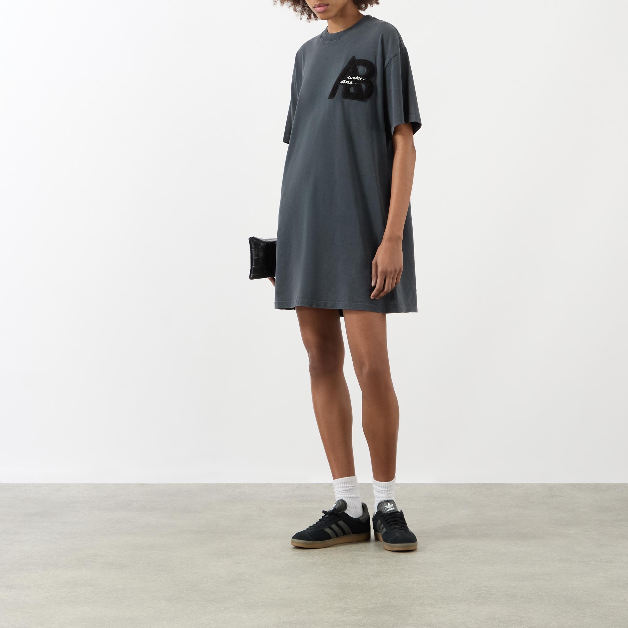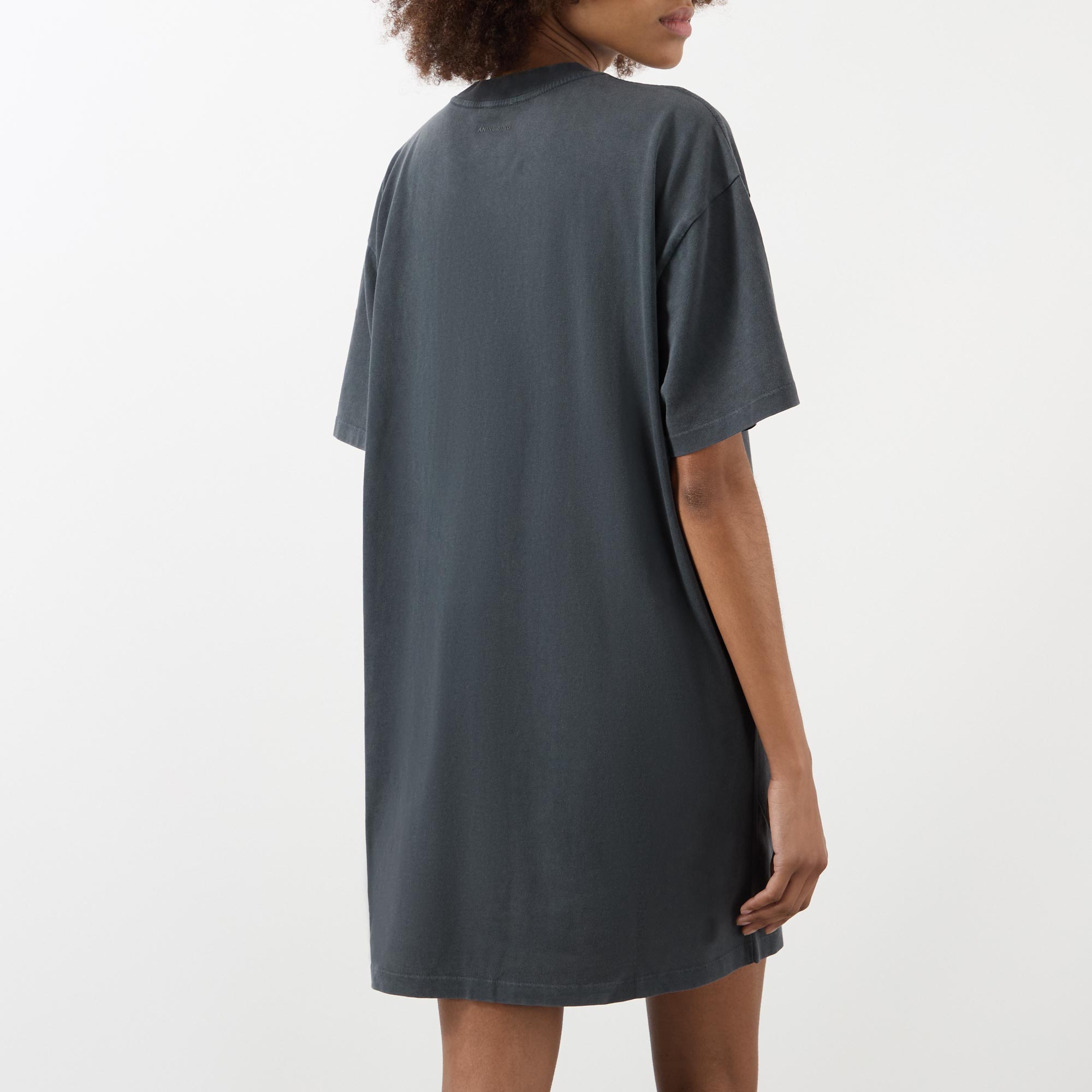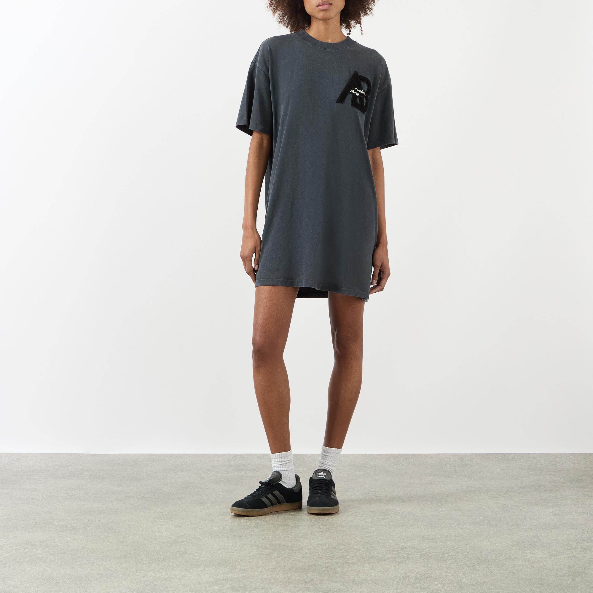 • Round neck, short sleeves, logo detail, straight hemline, shift silhouette, mini length