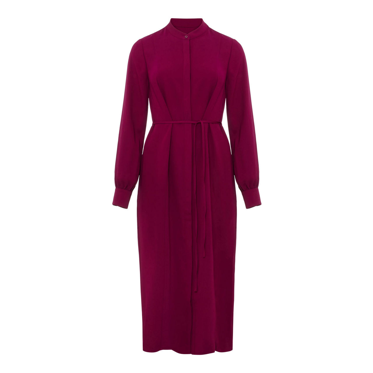 - Mandarin collar, front buttons, buttoned cuffs, long sleeves, tie belt to cinch the waist, front fastening, unlined