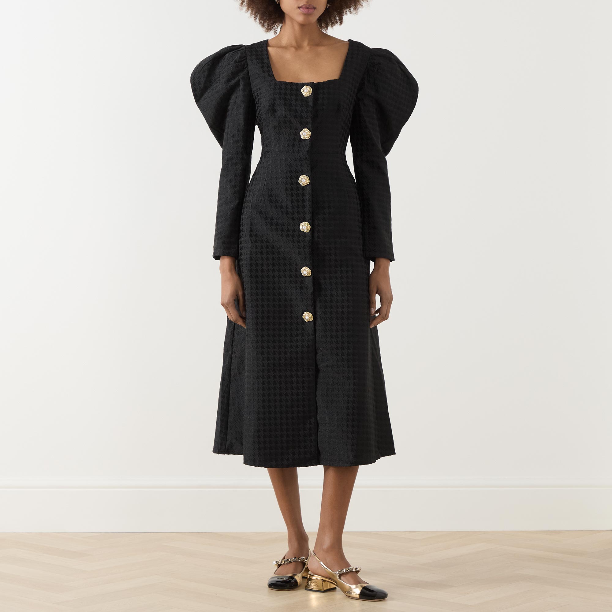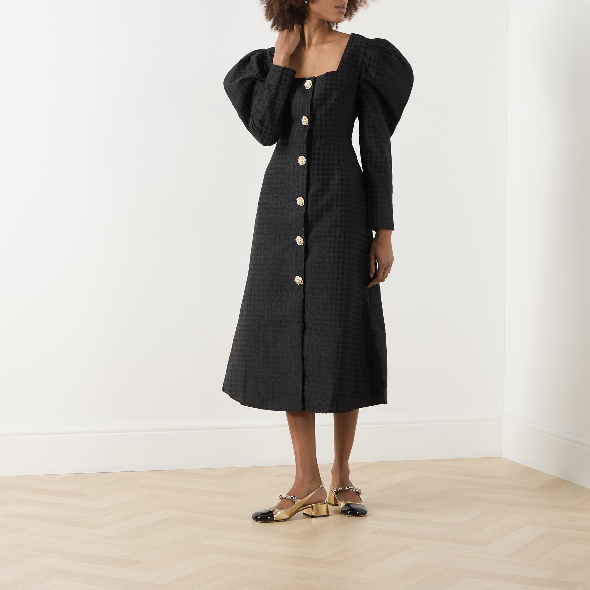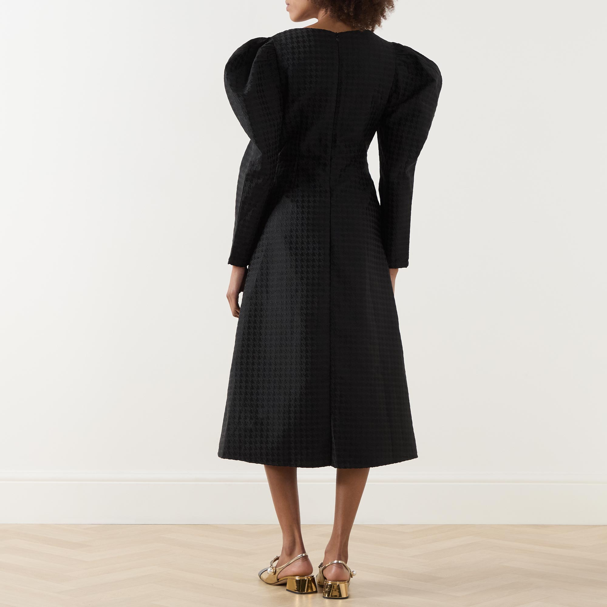 SISTER JANE Cinematic Puff-Sleeve Jacquard Flared Dress
