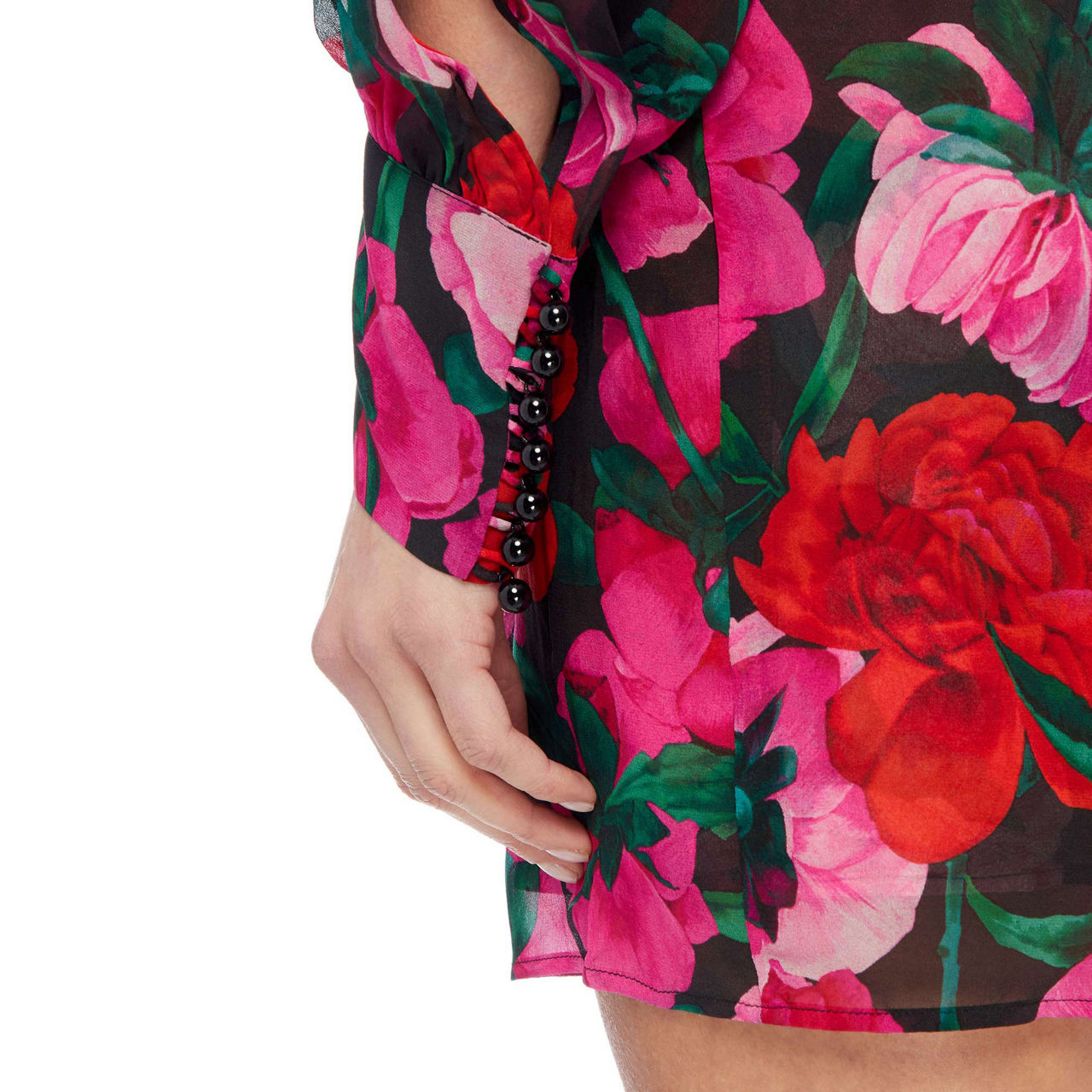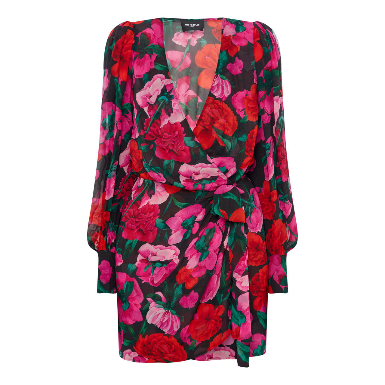 Indulge in the sweet life as The Kooples translate Italian luxury in the language of Parisian glamour with the Dolce Vita Dress. Hand-painted roses run throughout the translucent silk design, with long puff sleeves and a deep v-neck pouring into a sleek wrap tie, while the fluttery skirt adds movement to the mini style. Boots and a crossbody are all that's needed for a bright feminine look.